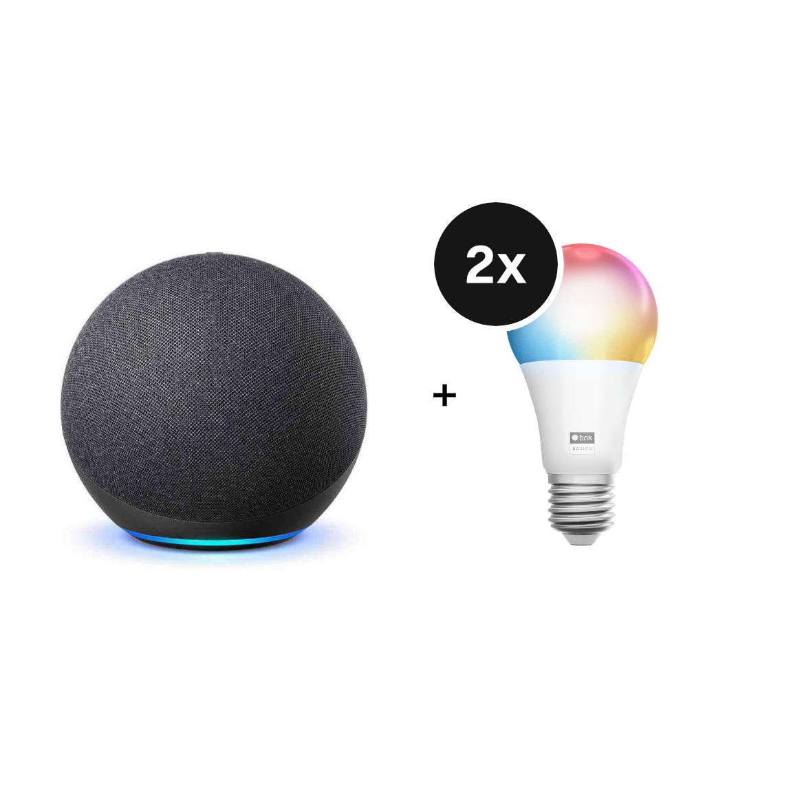Amazon Starter Set - mit 2 Echo Dot (5th Gen) + tink Basics Matter White & Color Bulb E27 + 2 Smart Plugs