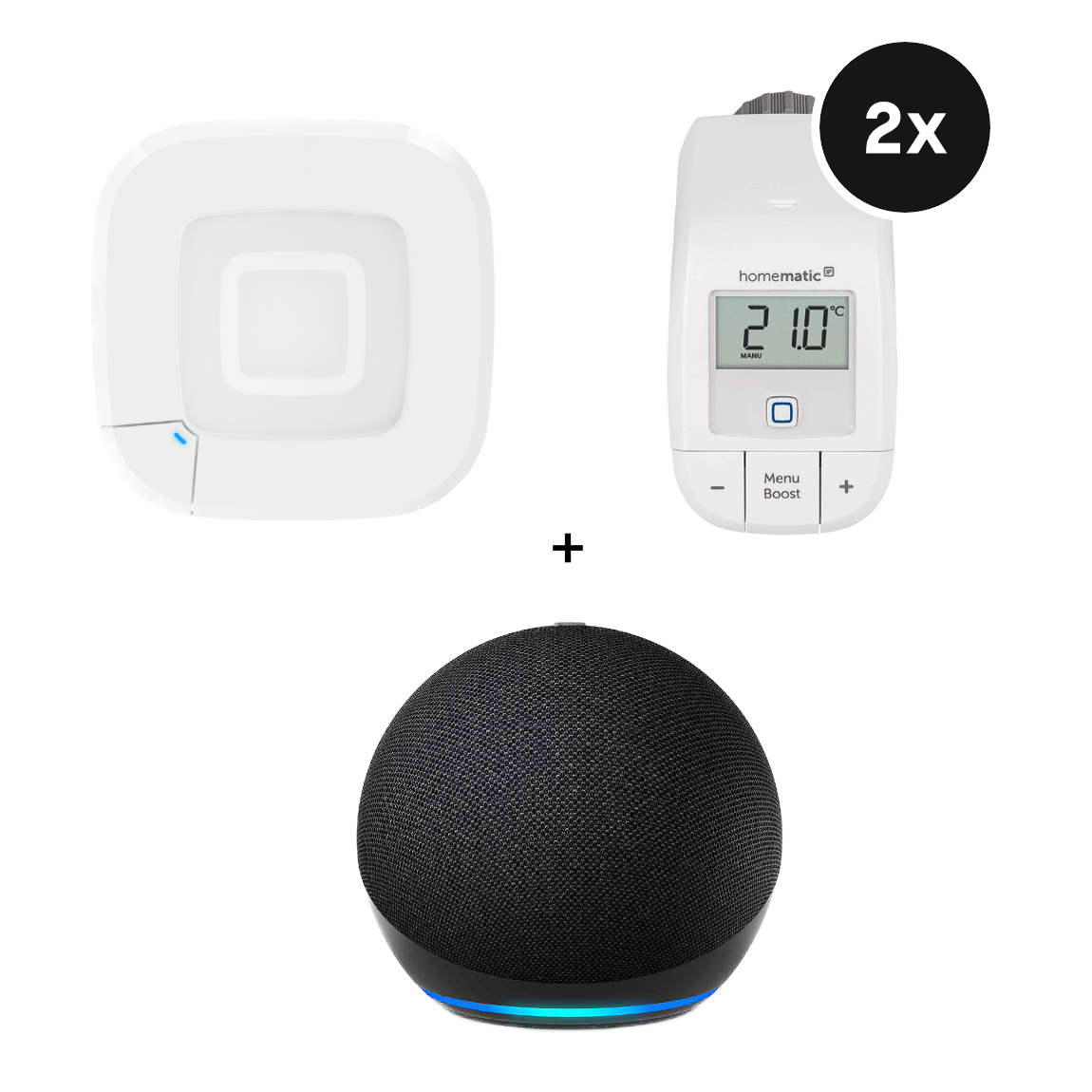Homematic IP Starter Set Heizen mit 2 Heizkörperthermostaten Basic - mit Access Point 2 + Amazon Echo Dot (5th Gen)
