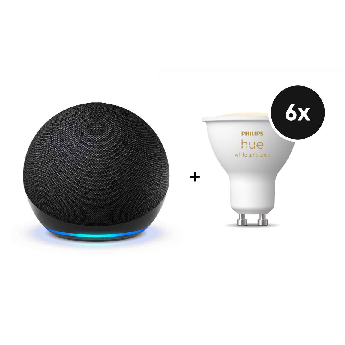 Amazon Echo Dot (5th Gen) + Philips Hue White Ambiance GU10 - 6er-Set