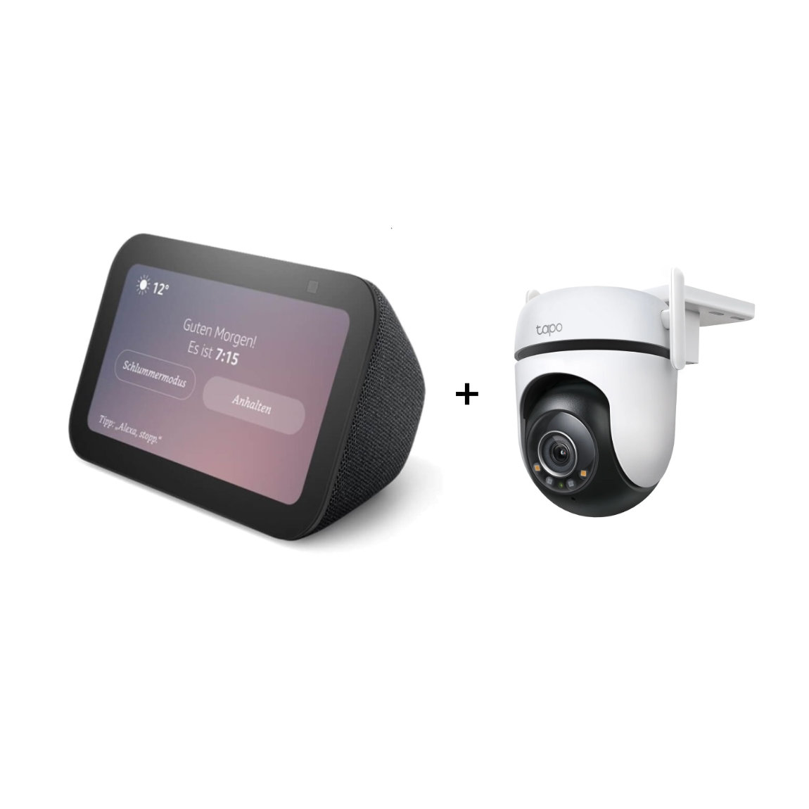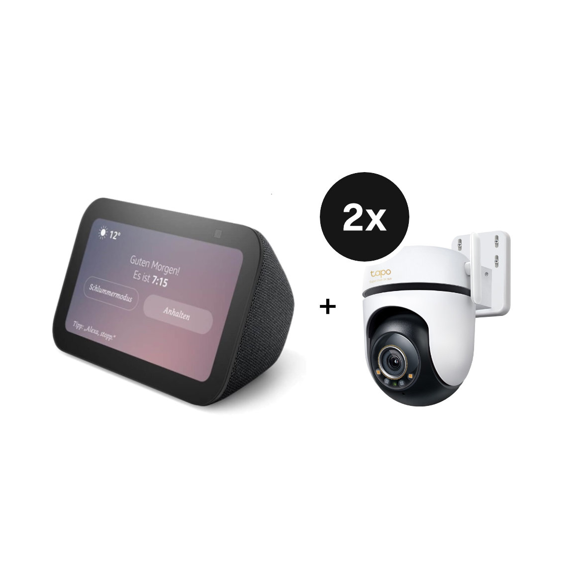 Amazon Echo Show 5 - Neueste Generation + TP-Link Tapo C530WS - Schwenk-Neige-Außenkamera - 2er-Set