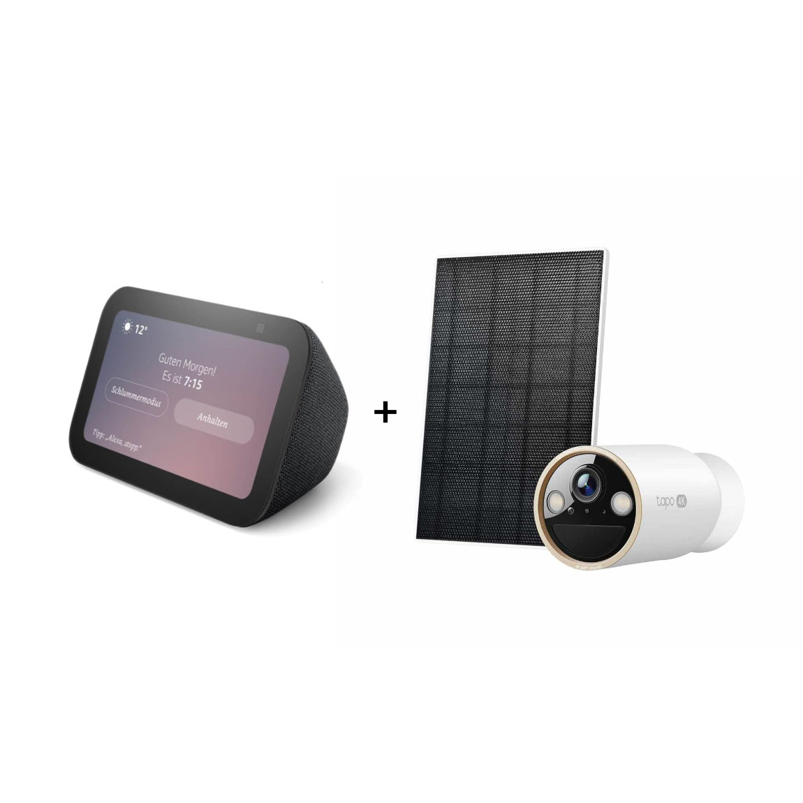Amazon Echo Show 5 - Neueste Generation + TP-Link Tapo C460 KIT - 4K-Außenkamera + Solarpanel