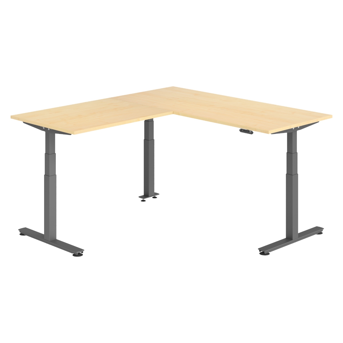 bümö Eckschreibtisch elektrisch höhenverstellbar L-Form: 180 x 200 cm in Ahorn, Gestell graphit - Stehschreibtisch mit Memory-Steuerung, elektrischer