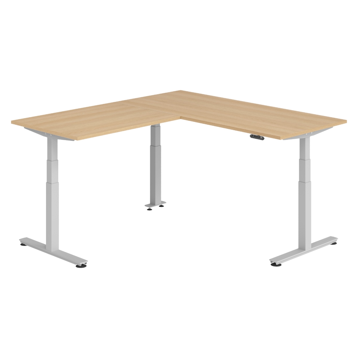 bümö Eckschreibtisch elektrisch höhenverstellbar L-Form: 180 x 200 cm in Eiche, Gestell silber - Stehschreibtisch mit Memory-Steuerung, elektrischer