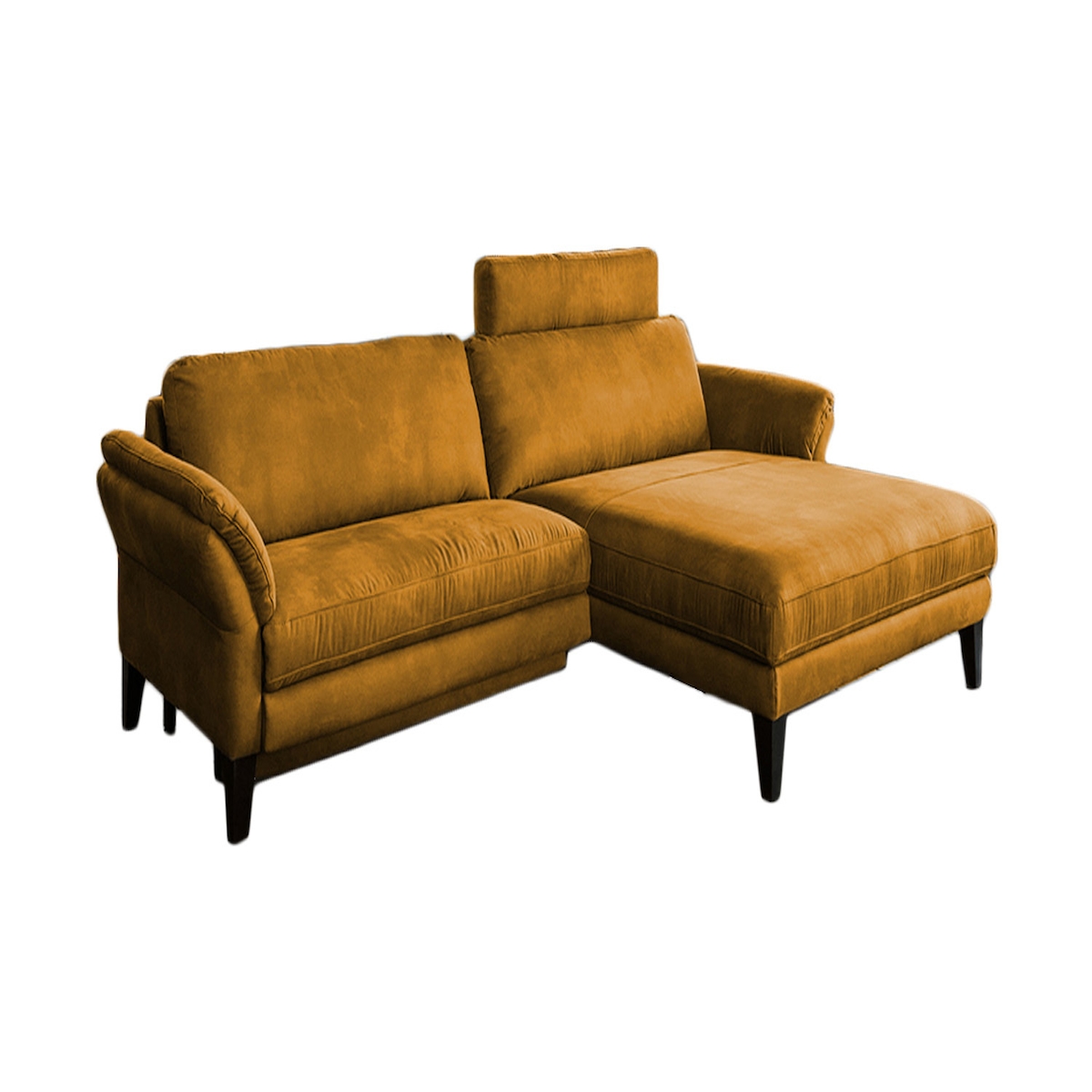 KAWOLA Sofa MALTA Ecksofa Stoff gold mit Kopfstütze Recamiere links