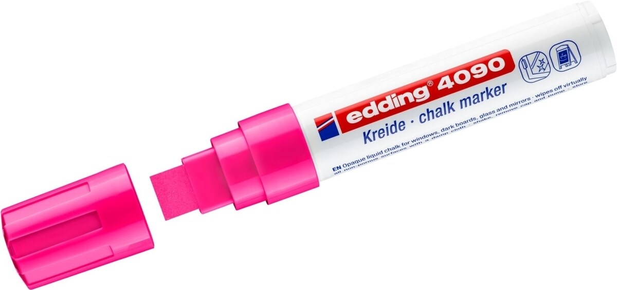 edding 4090 Kreidemarker - neon-pink - 1 Kreidestift - Keilspitze 4-15 mm - breiter Kreidestift für Tafel abwischbar - zum Beschriften von Fenster...