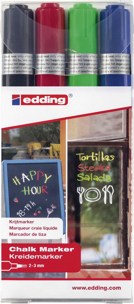 Edding Kreidemarker 4095 Dünn 2-3mm 4er-Etui Grundfarben Window-Marker