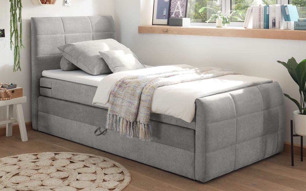 ED Lifestyle Boxspringbett Kuba 3, Uran 02 schlamm, 120 x 200 cm, inkl. Visco-Topper und Bettkasten braun Stoff