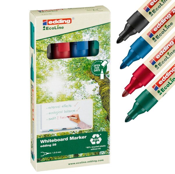 edding EcoLine 28 Non-permanent Whiteboard-Marker Farbig sortiert Mittel Rundspitze 1,5 - 3 mm 4 Stück