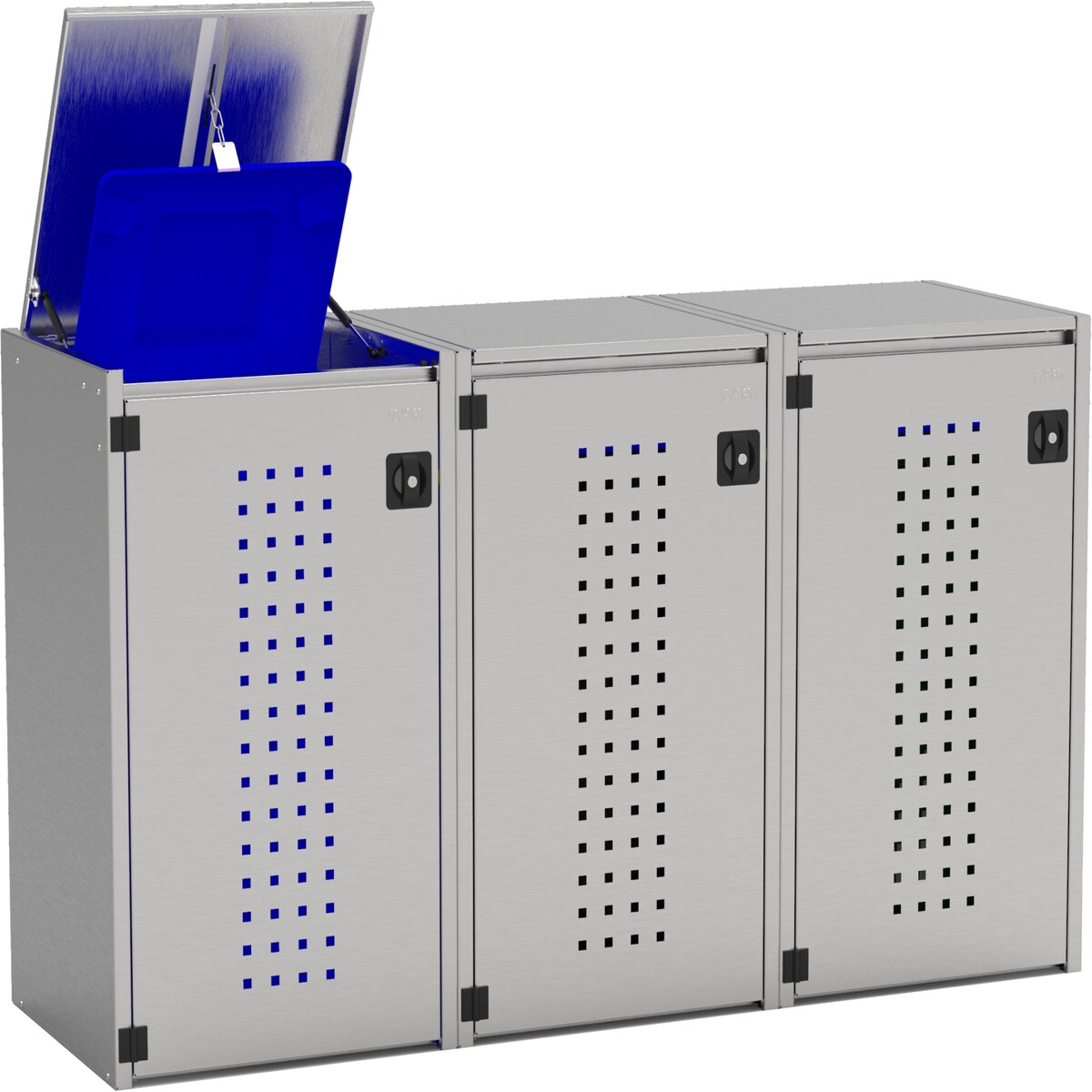 DELUKE 3er Mülltonnenbox JAGU Edelstahl | Blau | 115x207x77,5cm | Mülltonnenverkleidung für 3 Tonnen 240L Müllbox aus Metall Mülltonnenschut...