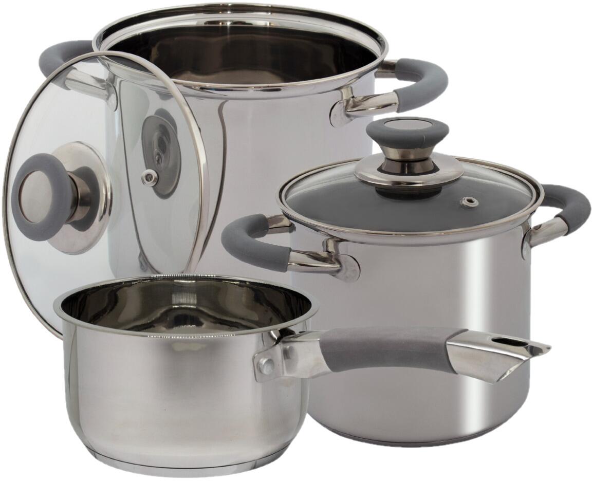Induktions-Topfset aus Edelstahl mit Glasdeckel und hitzebeständigen Griffen