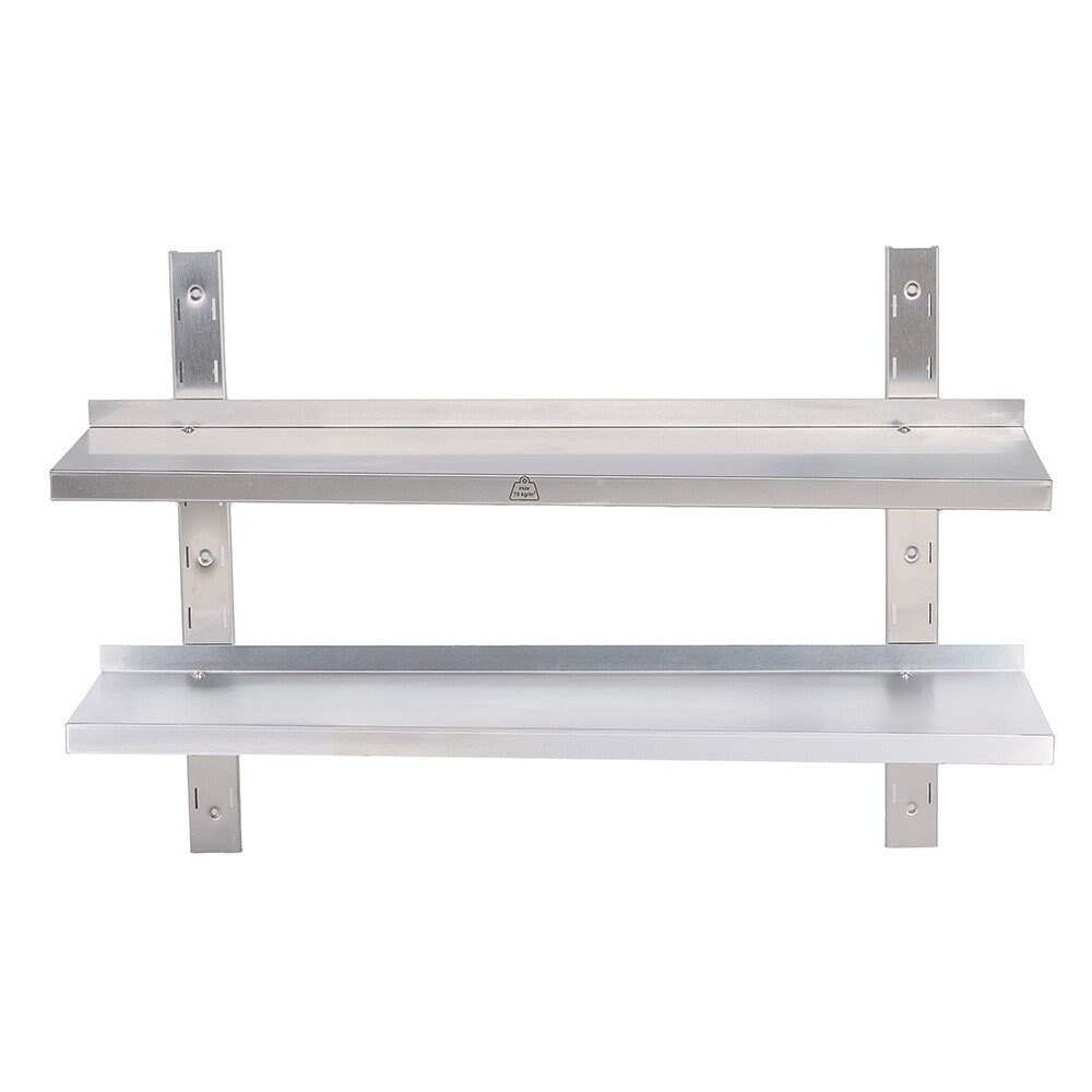 Mahlzeit Edelstahl Wandregal, 60 x 35 cm, 2 Ablagen, Küchenregal Hängeregal Wandregal Wandbord