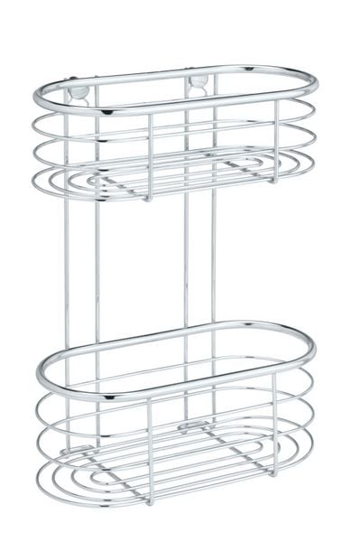 Edelstahl Wandregal Mod. Trestina 2 Etagen, extra tiefer Korb für Shampoo- und Duschgelflaschen
