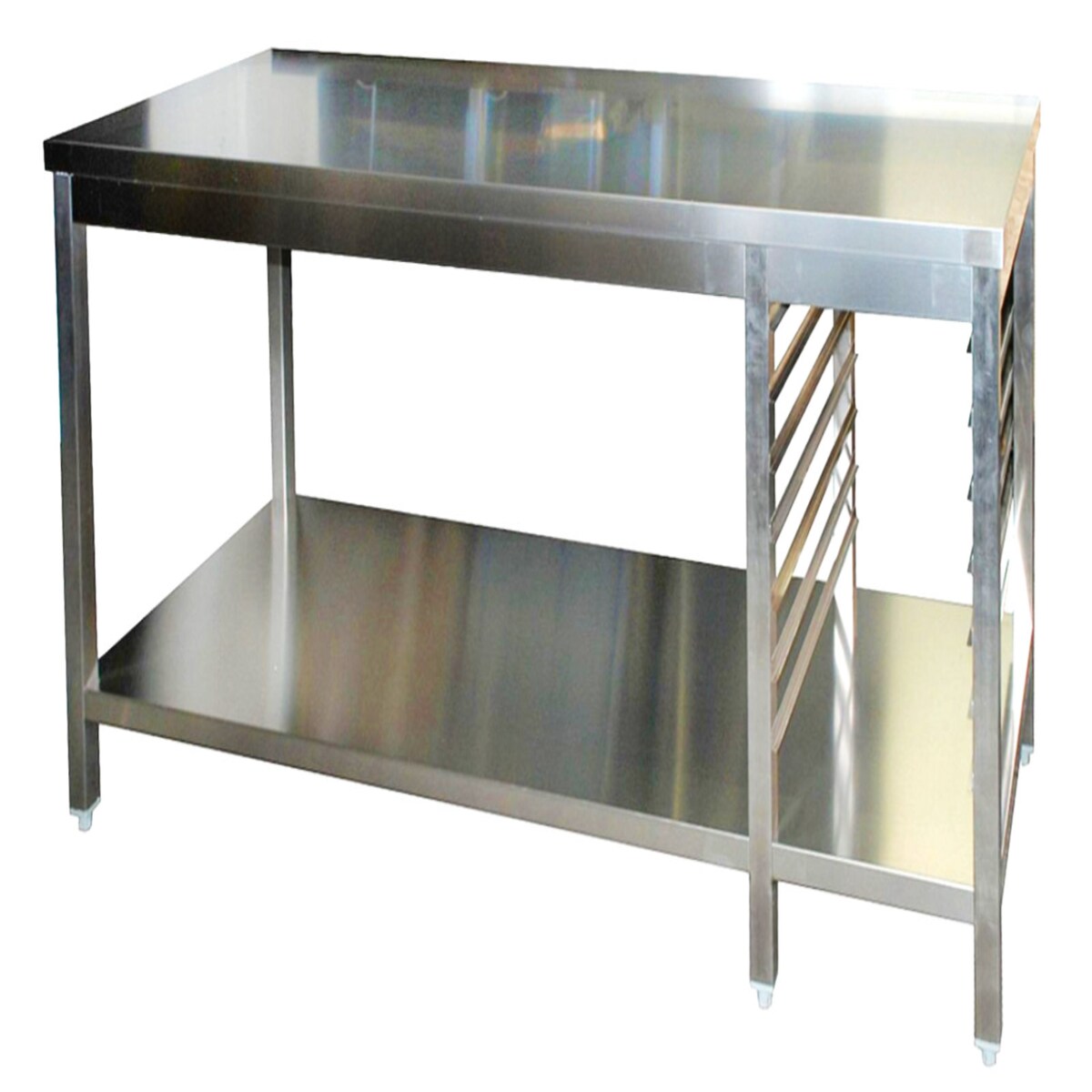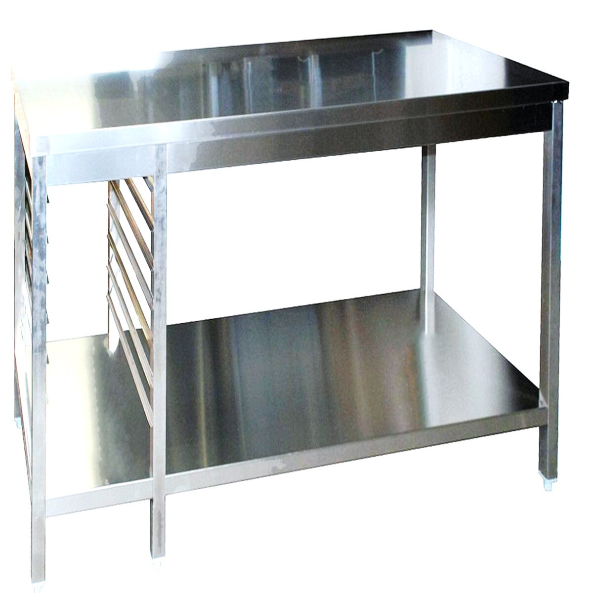 A&S Gastro Edelstahl Arbeitstisch mit Aufkantung mit GN-Winkel links GN1/1 verschweißt Bautiefe 800mm mit Grundboden AISI 304