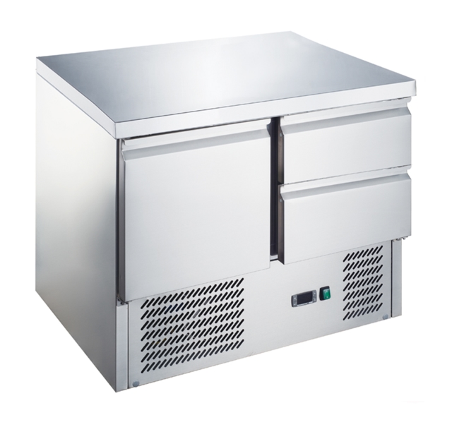 Ristoattrezzature Saladette Kühltheke mit Edelstahlplatte 1 Tür und 2 Schubladen 90x70x87.6h cm