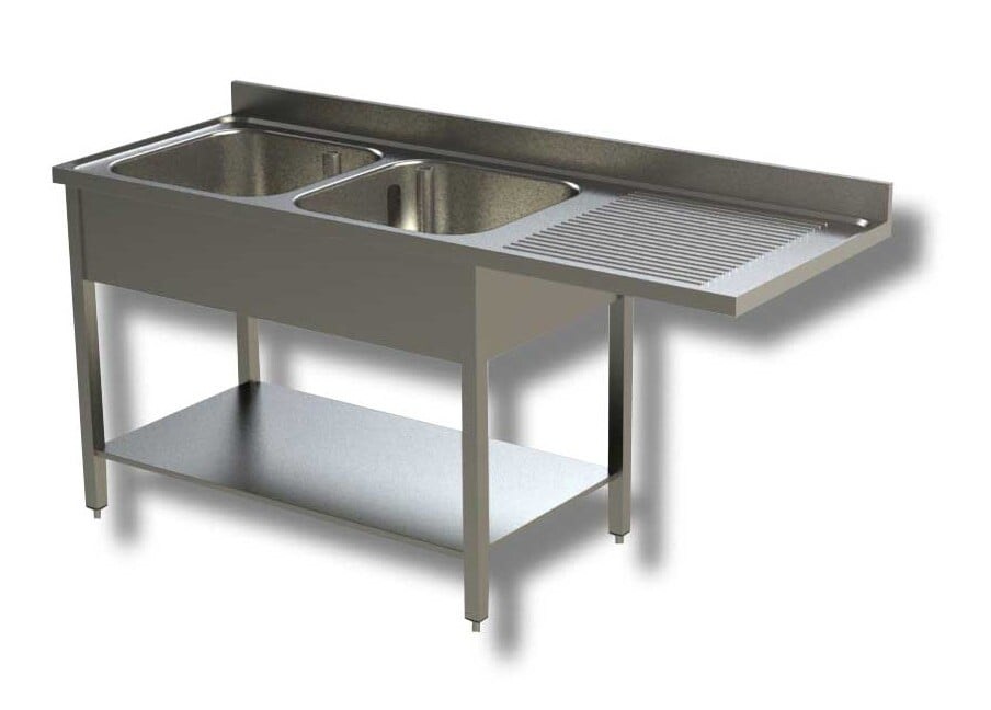 Ristoattrezzature Edelstahlspüle – professionell, für Küchen, Restaurants und Pizzerien – 2 Becken, freitragender Abfluss rechts – 160 x 60 x 85 h