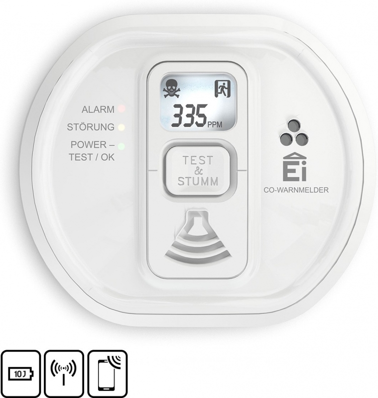 Ei Electronics Kohlenmonoxidwarnmelder 10-Jahres Batt.Funk Ei208iW-3XD ; Ei Eletronics