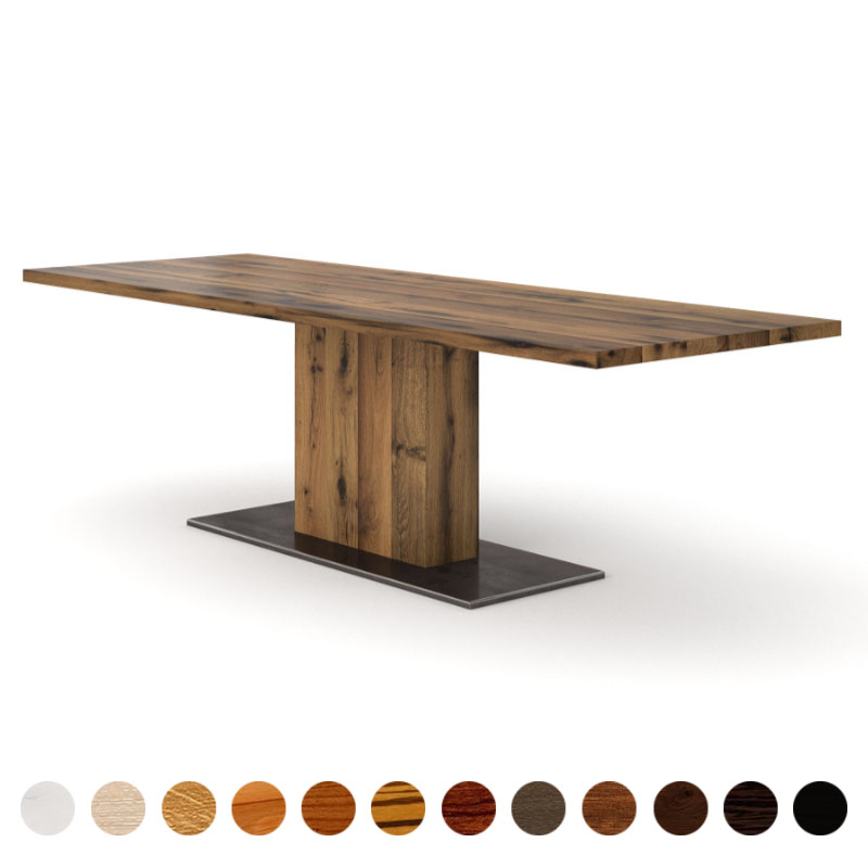 Esstisch aus Massivholz mit Mittelfuß selbst konfigurieren Eiche-Altholz Dublin