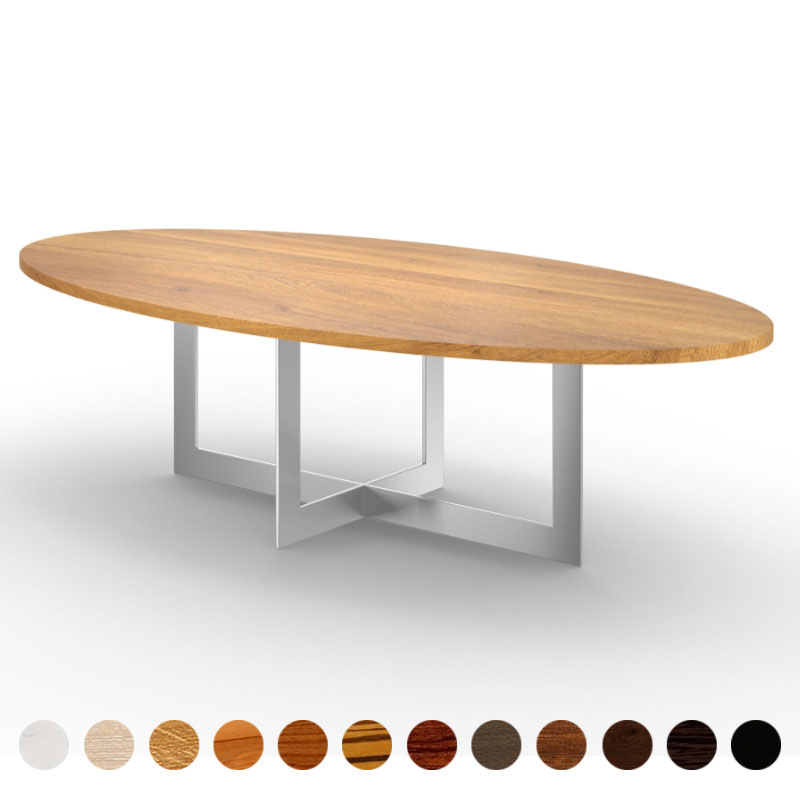 Exklusiver Esstisch rund/oval Massivholz Eiche Metallgestell Arbon