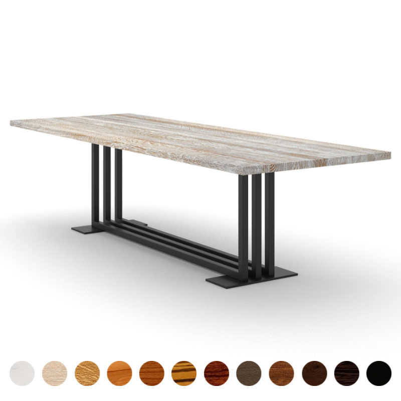 Deluxe Esstisch massive Holzplatte Eiche-Altholz und Mittelfuss aus Metall Venedig