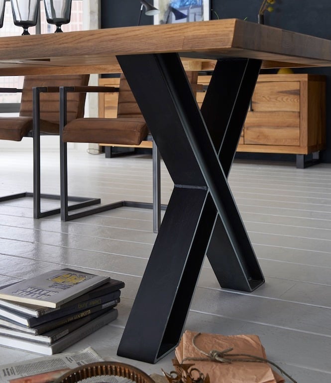 Esstisch Concept4you Eiche massiv X-Beine 10x10cm H-Stahl Riverside