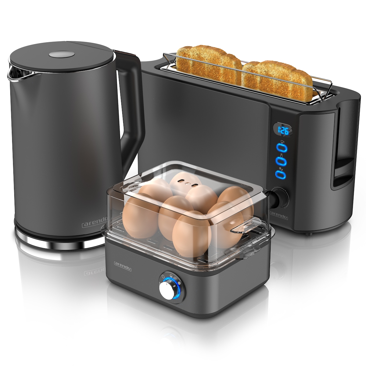 Arendo Frühstücks-Set in grau - Wasserkocher / Toaster / Eierkocher