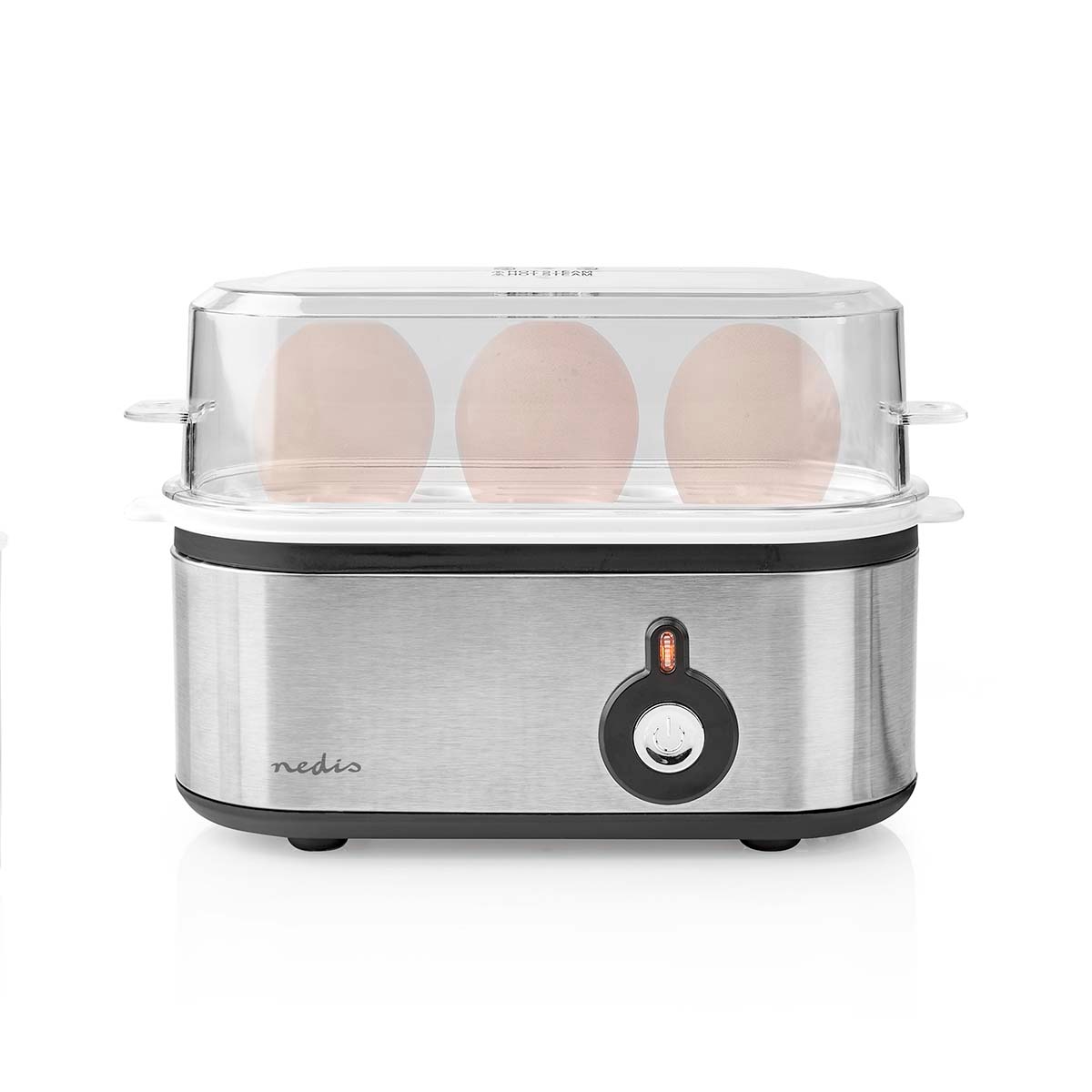 Nedis Eierkocher - 3 Eier - Messbecher - Aluminium / Schwarz