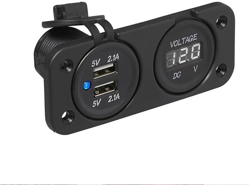 Pro Plus Einbau Kit: Voltmeter 6-30V + USB-A Doppel-steckdose 2x2100mA