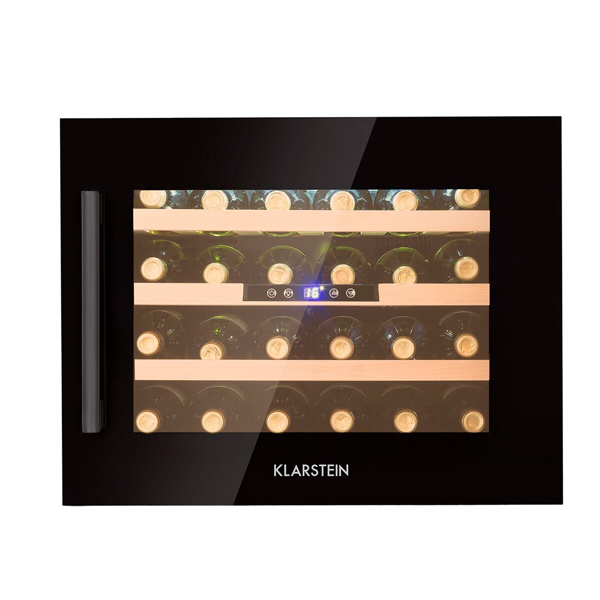 Klarstein Illuminosa Weinkühlschrank Einbau - 19 Flaschen, 1 Zone, 5-20°C, Touch, LED, UV-Schutz, leise, Buchenholzregale, Einbau-Weinkühlschrank