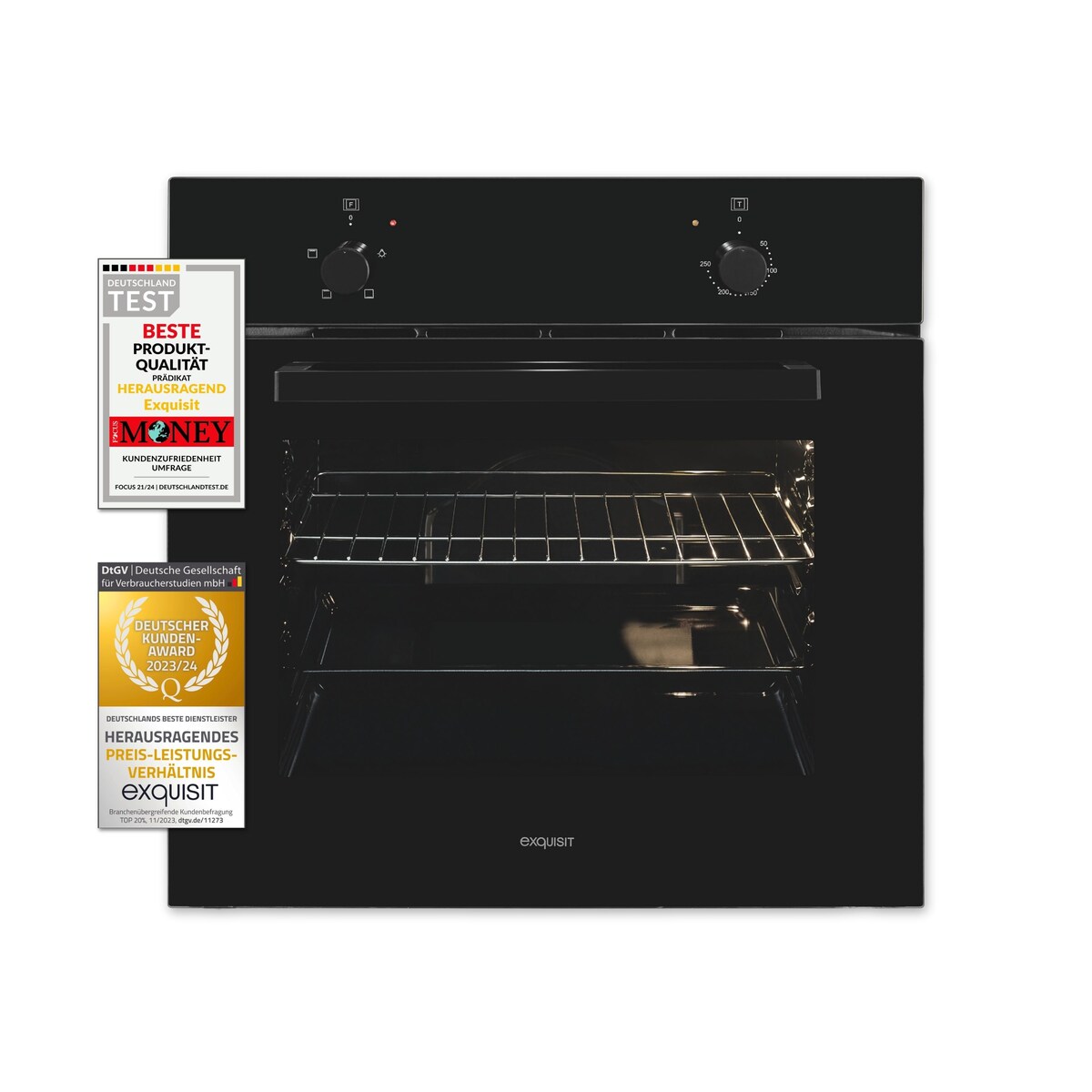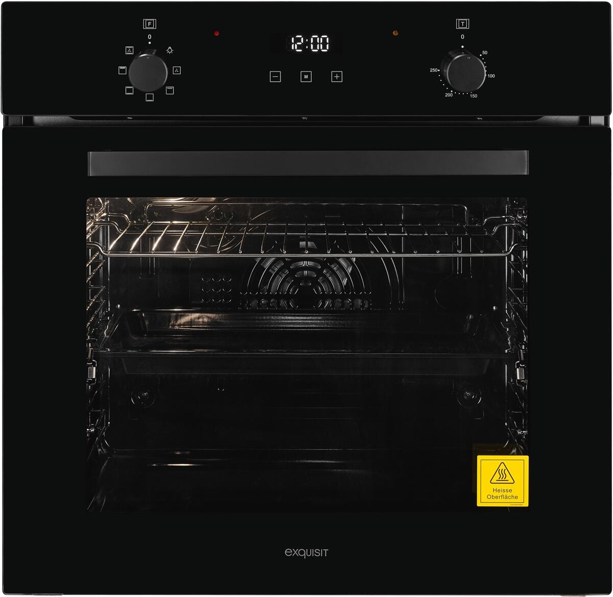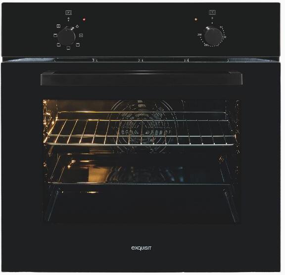 Exquisit EBE255-U-020 EEK: A Einbaubackofen, 59,5 cm breit, 59 L, 7 Funktionen, Grill, schwarz