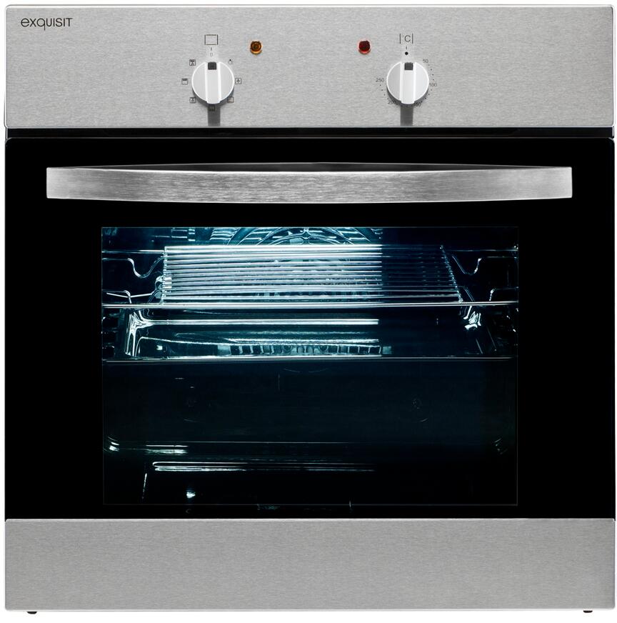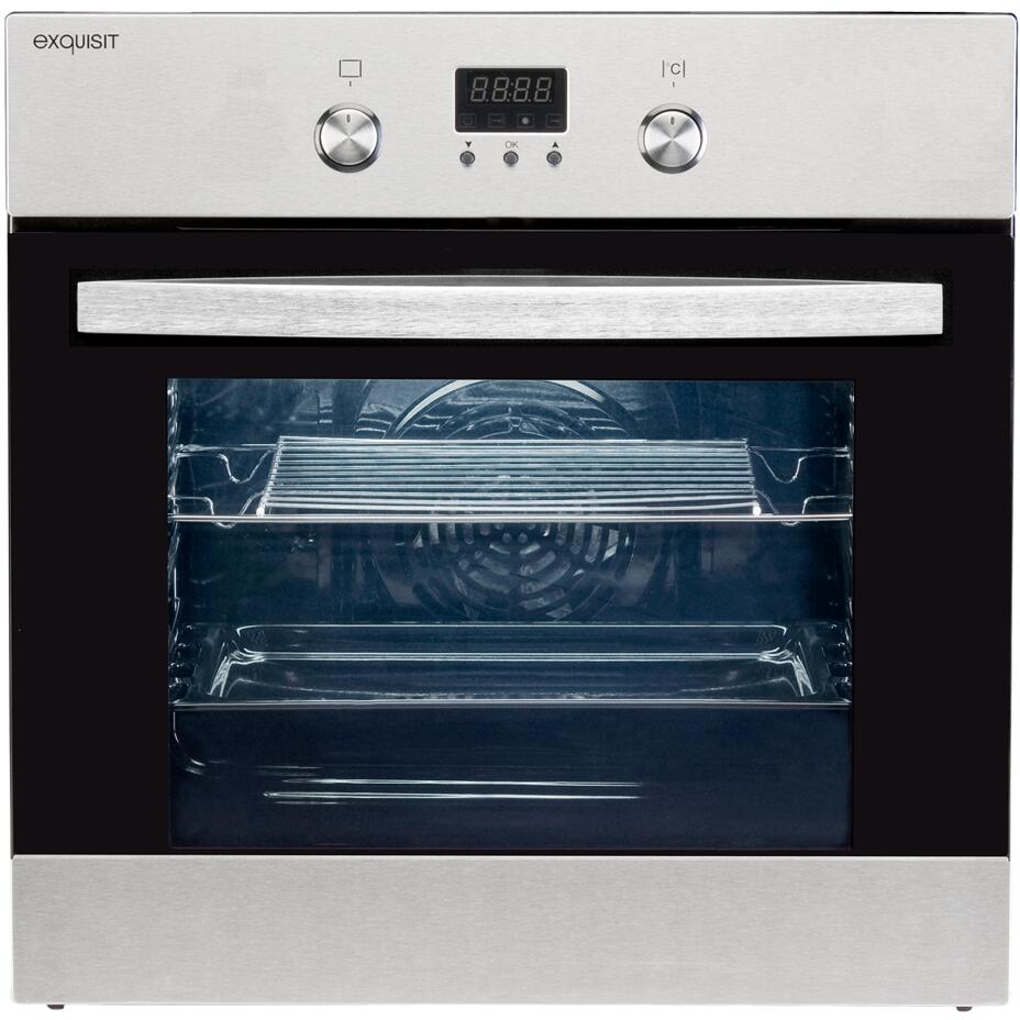 Exquisit EBE65-1H EEK: A Elektro-Einbaubackofen, 60 cm breit, 51 Liter, Heißluft, Grill, inox