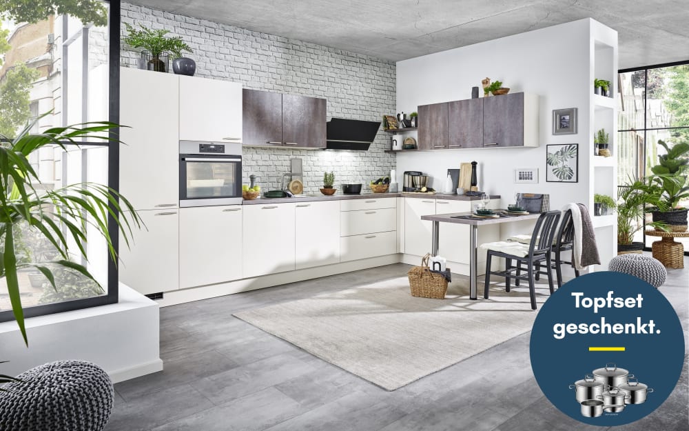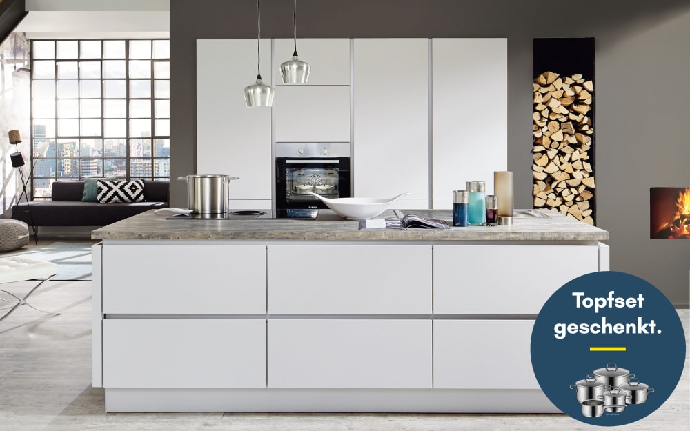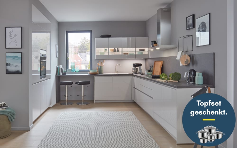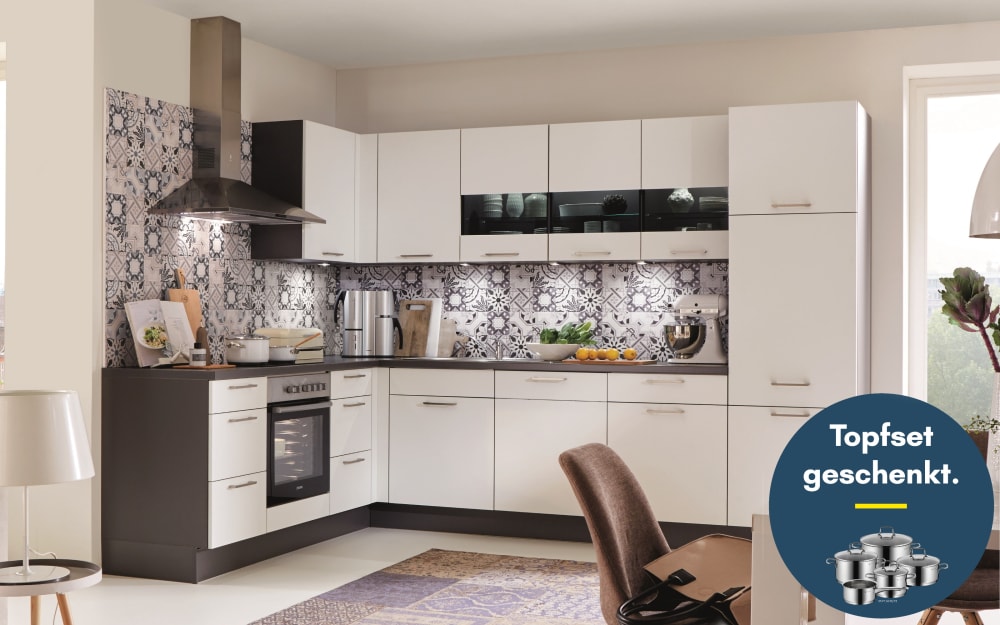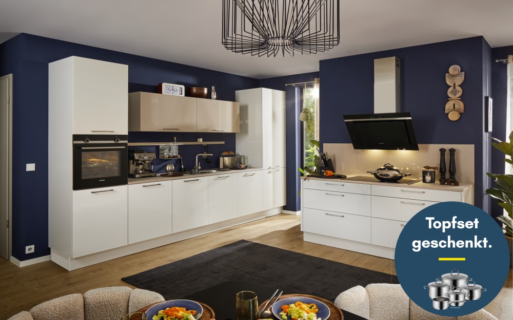Impressa Einbauküche Uno, kristallweiß, inkl. Siemens Elektrogeräte