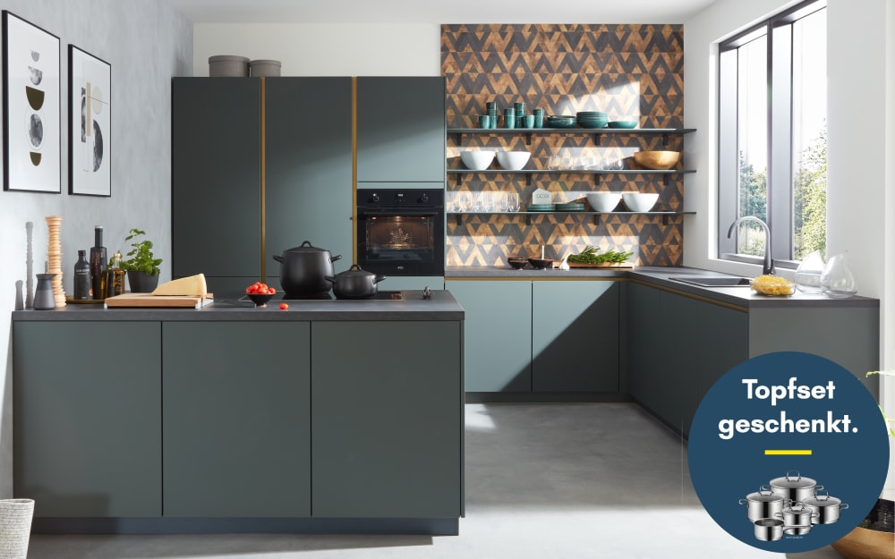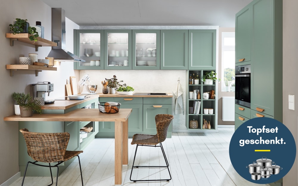 Mondo Einbauküche Esilia, mineralgrün, inkl. AEG Elektrogeräte