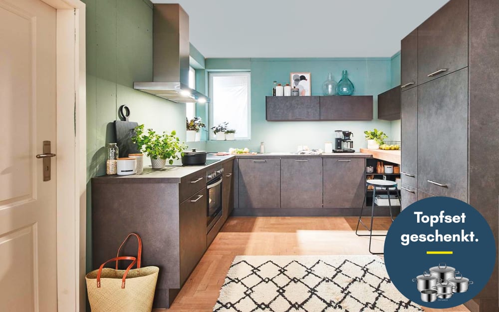Mondo Einbauküche Lenzen, schwarzbeton, inkl. AEG Elektrogeräte dunkelgrau