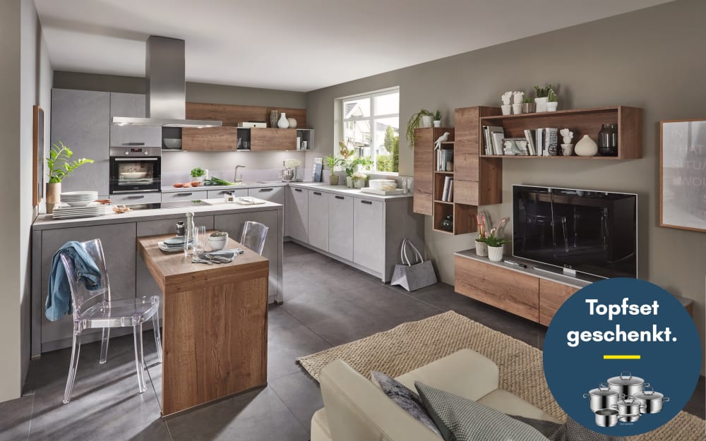 Nobilia Einbauküche Riva, Beton Terragrau Nachbildung, inkl. Privileg Elektrogeräte
