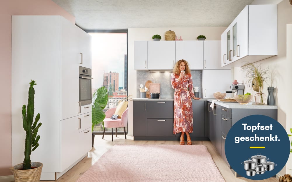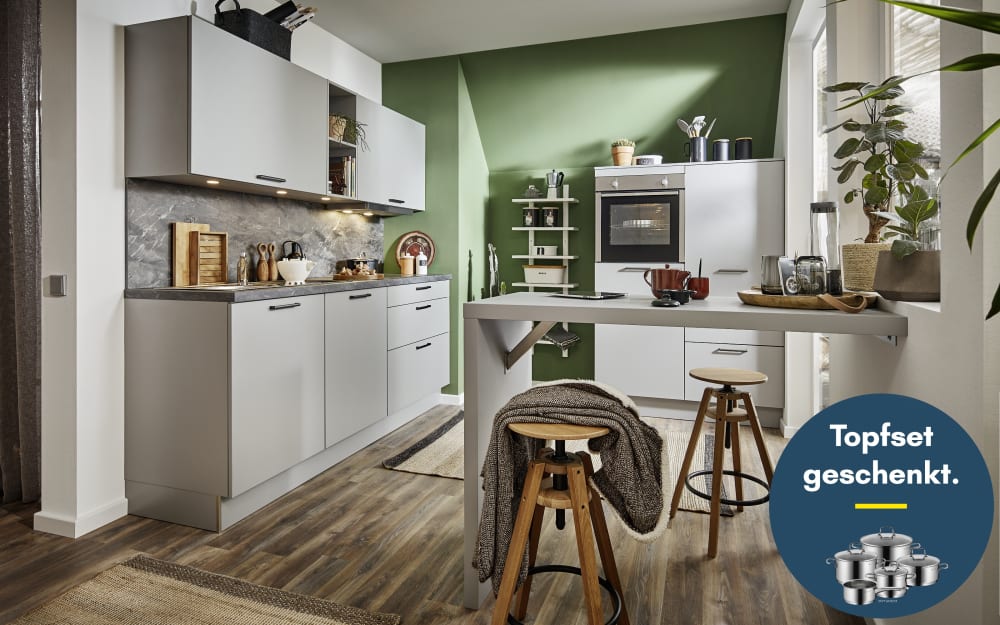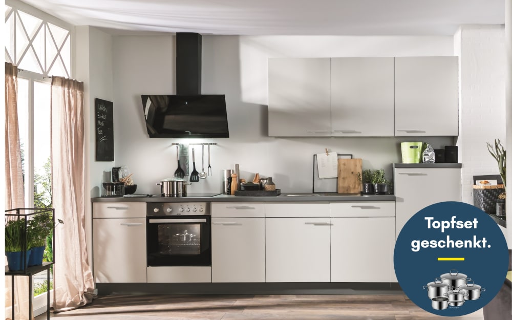 Mondo Einbauküche Ferna, seidengrau matt, inkl. AEG Elektrogeräte