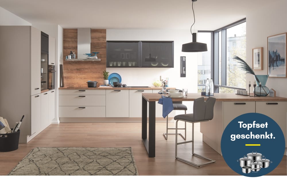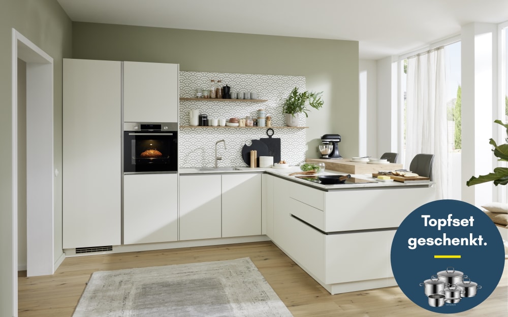 Mondo Einbauküche Esilia, sand ultramatt, inkl. Siemens Elektrogeräte