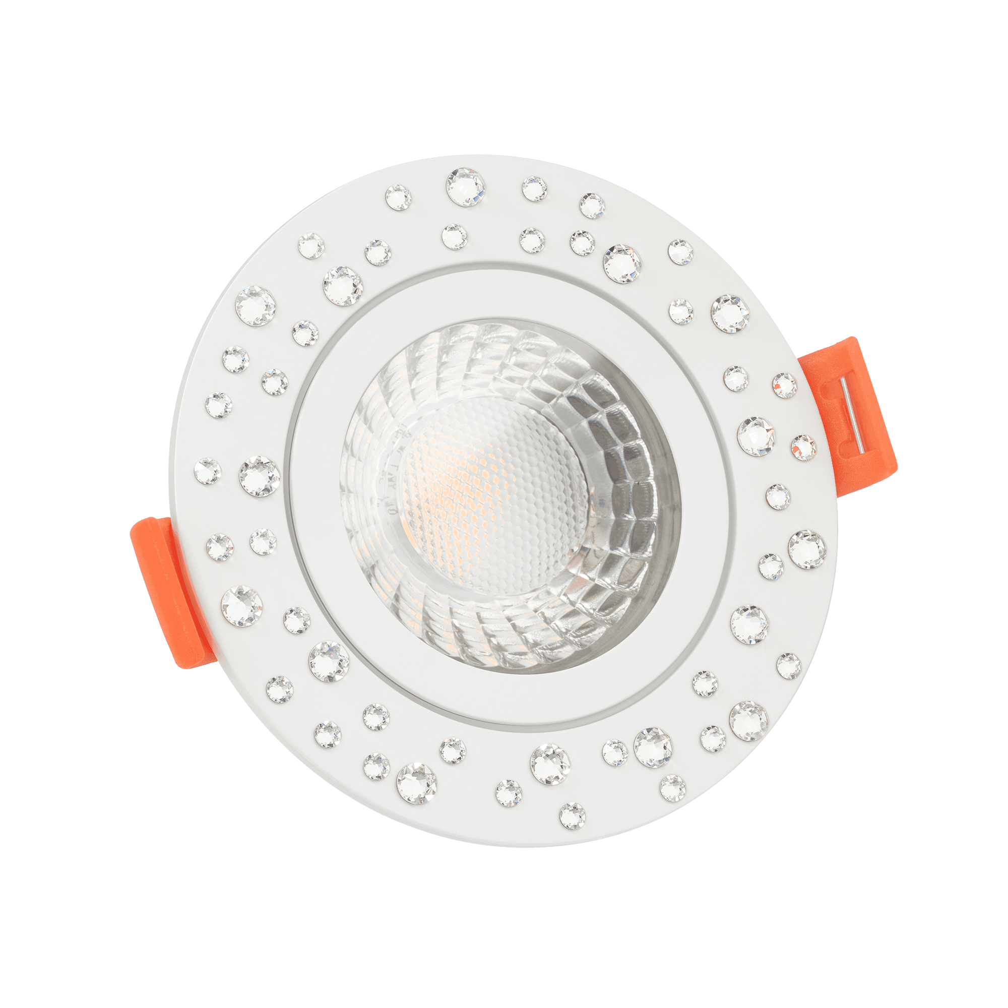 LED-Einbaustrahler Diamond | IP44 | extra flach 25mm | 230V & DIMMBAR | 7W statt 70W | 120° Milchglas | 90 CRI (2700K, weiß / klare Kristalle)
