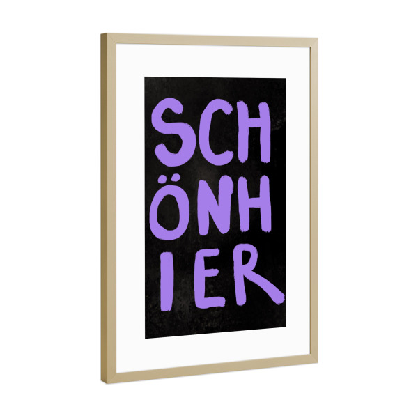 Poster mit Rahmen Gold "Schön hier !" artboxONE - Typografie - Schön hier,Eingangsbereich,Eingangstür,Lila,Typo,Schrift,Schön,Hier,Posterprint,Bunt
