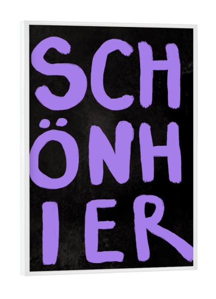 Poster mit weißem Rahmen "Schön hier !" artboxONE - Typografie - Schön hier,Eingangsbereich,Eingangstür,Lila,Typo,Schrift,Schön,Hier,Posterprint,Bunt
