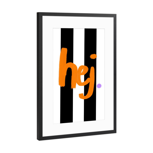 Poster mit Rahmen schwarz "Hej Hej stripes" artboxONE - Typografie,Abstrakt - Hej,Hello,Hey,Willkommen,Eingangstür,Flur,Floor,Trend,Neu