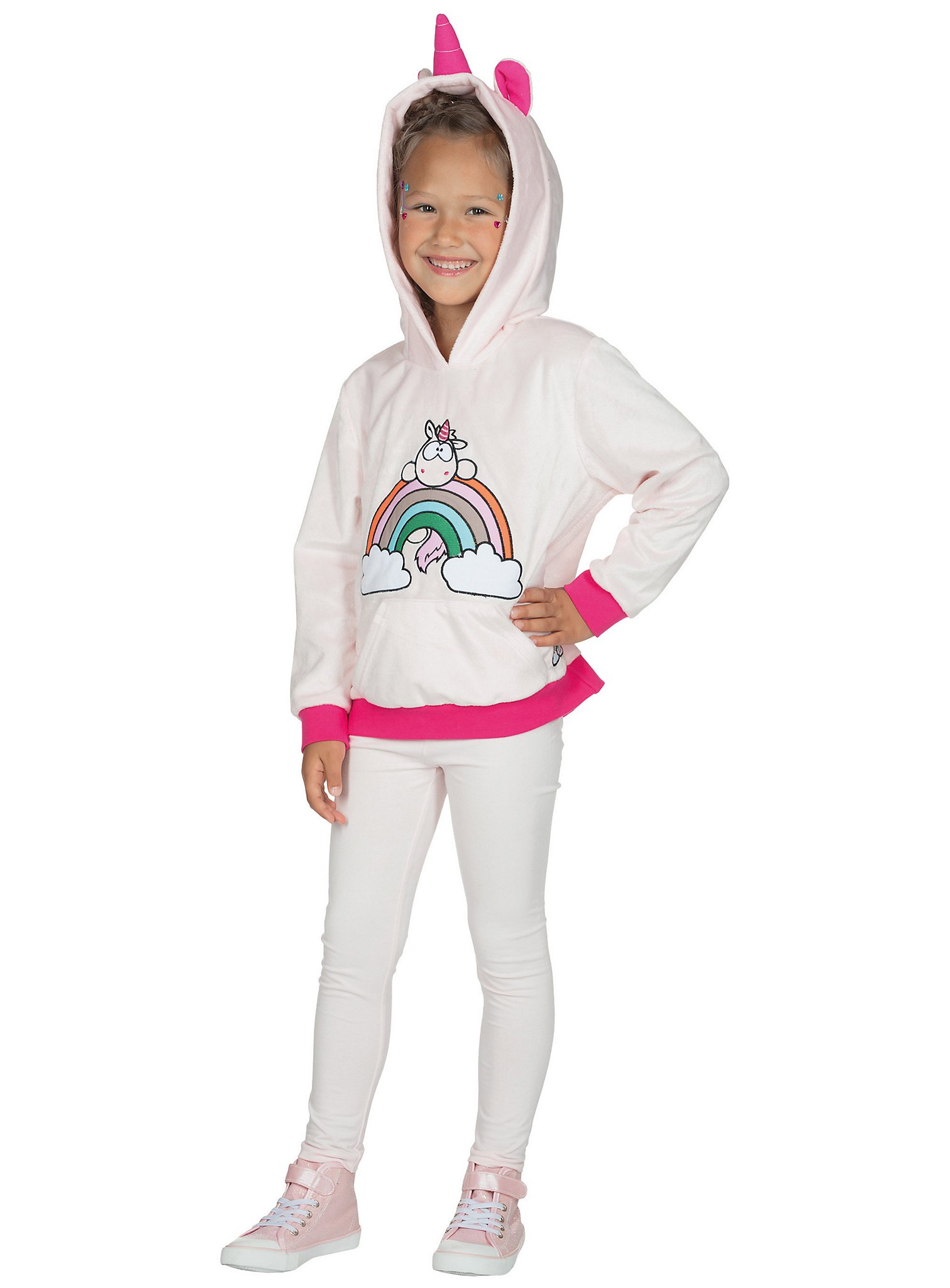 Einhorn Theodor Hoodie für Kinder | Halloween Kostüm für Mädchen | Größe: 128 | Farbe: Weiß