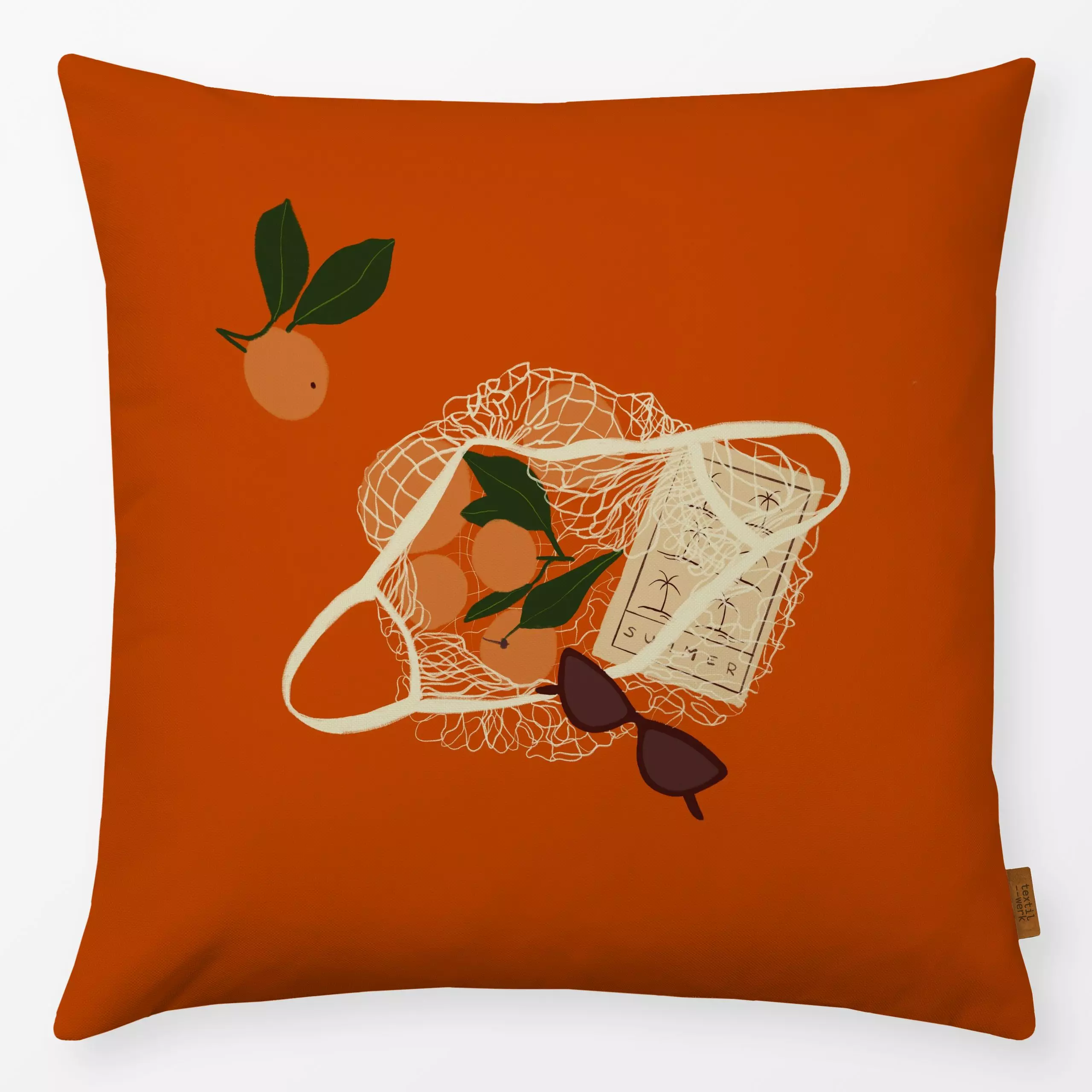 Kissen Einkaufsnetz Orange - Sommer, Früchte - von „Sophie Augustin Illustration"; Strand, Sommer, mediterran, Sommerlich, S...