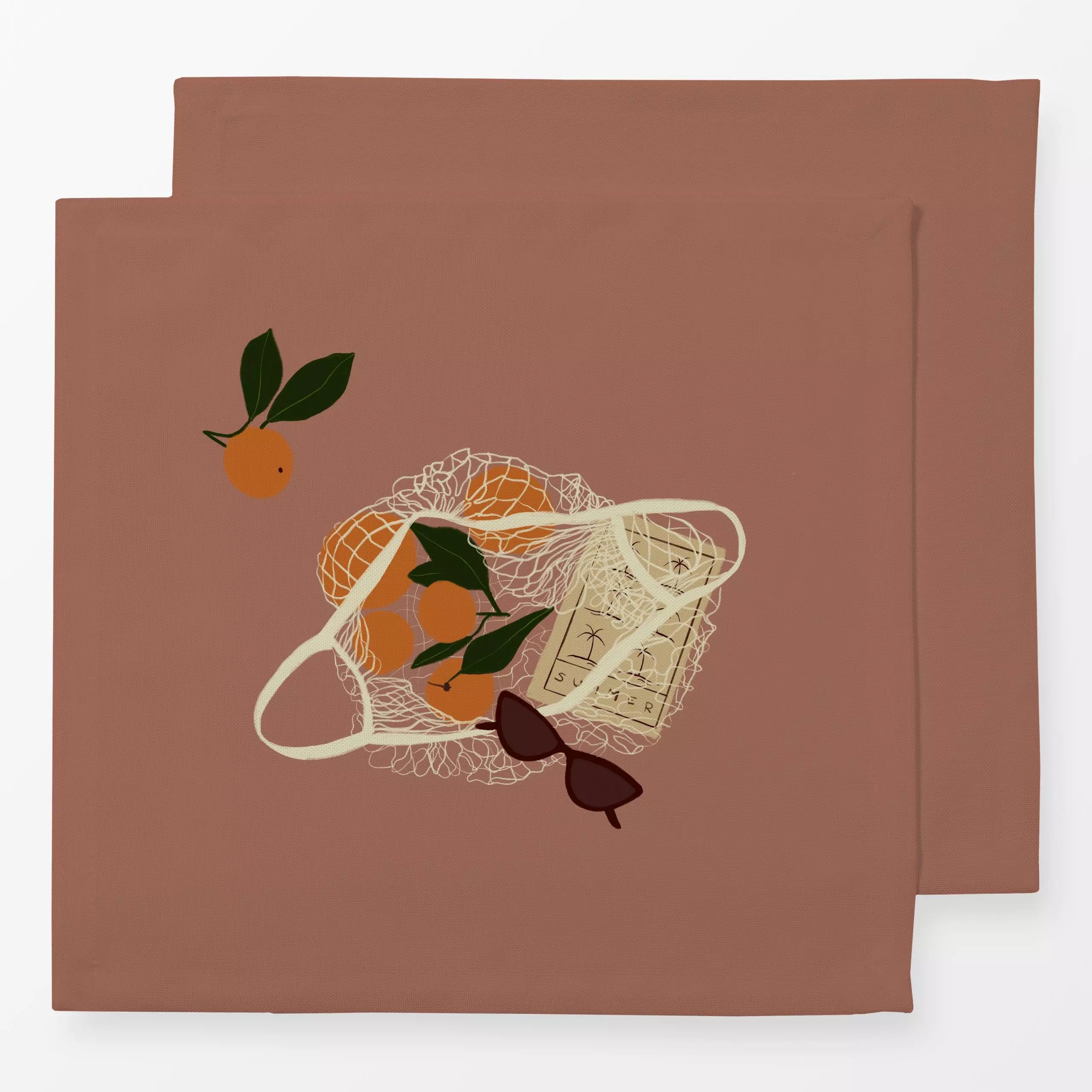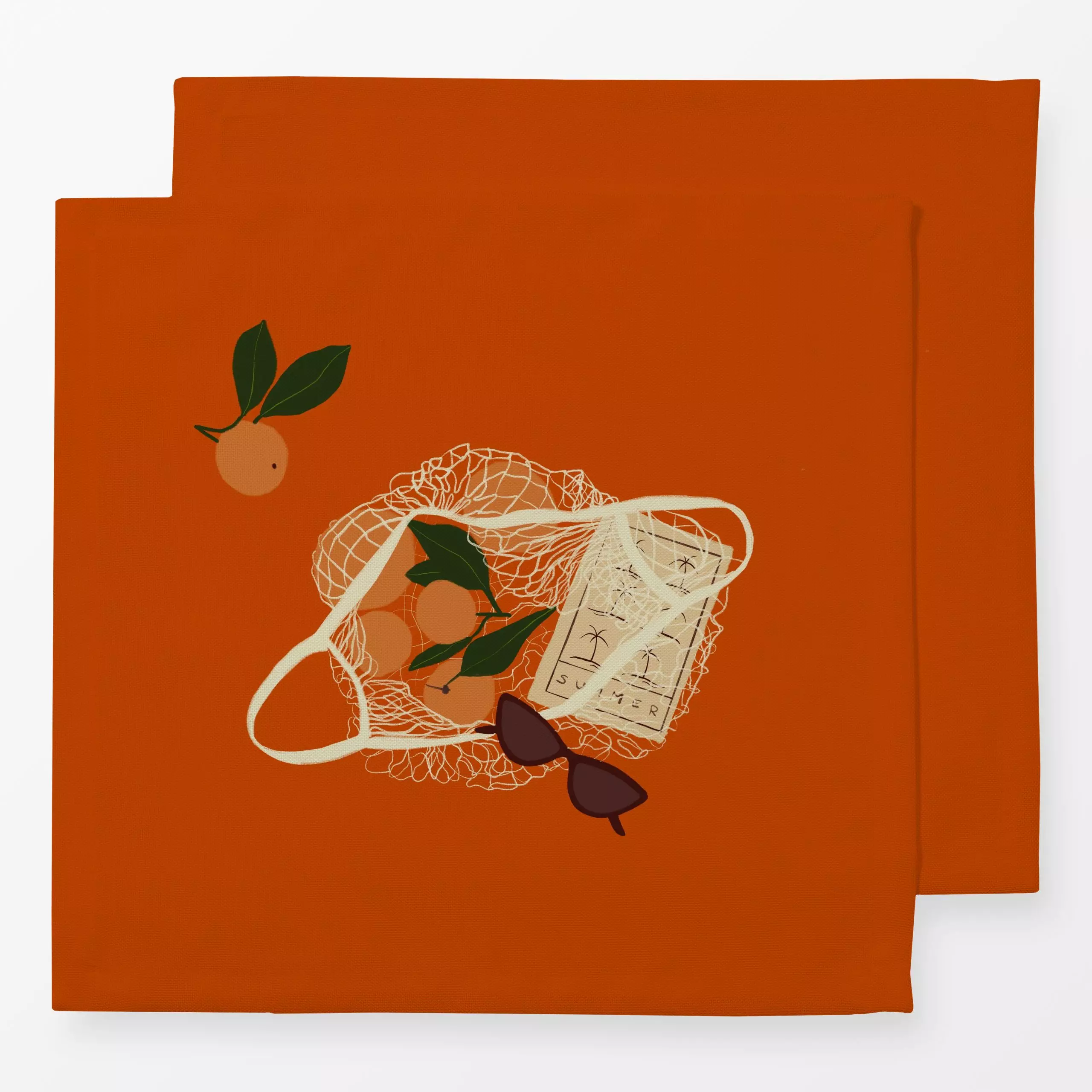 Servietten Einkaufsnetz Burned Sienna - Sommer, Früchte - von „Sophie Augustin Illustration"; Orange, Sommer, mediterran, So...