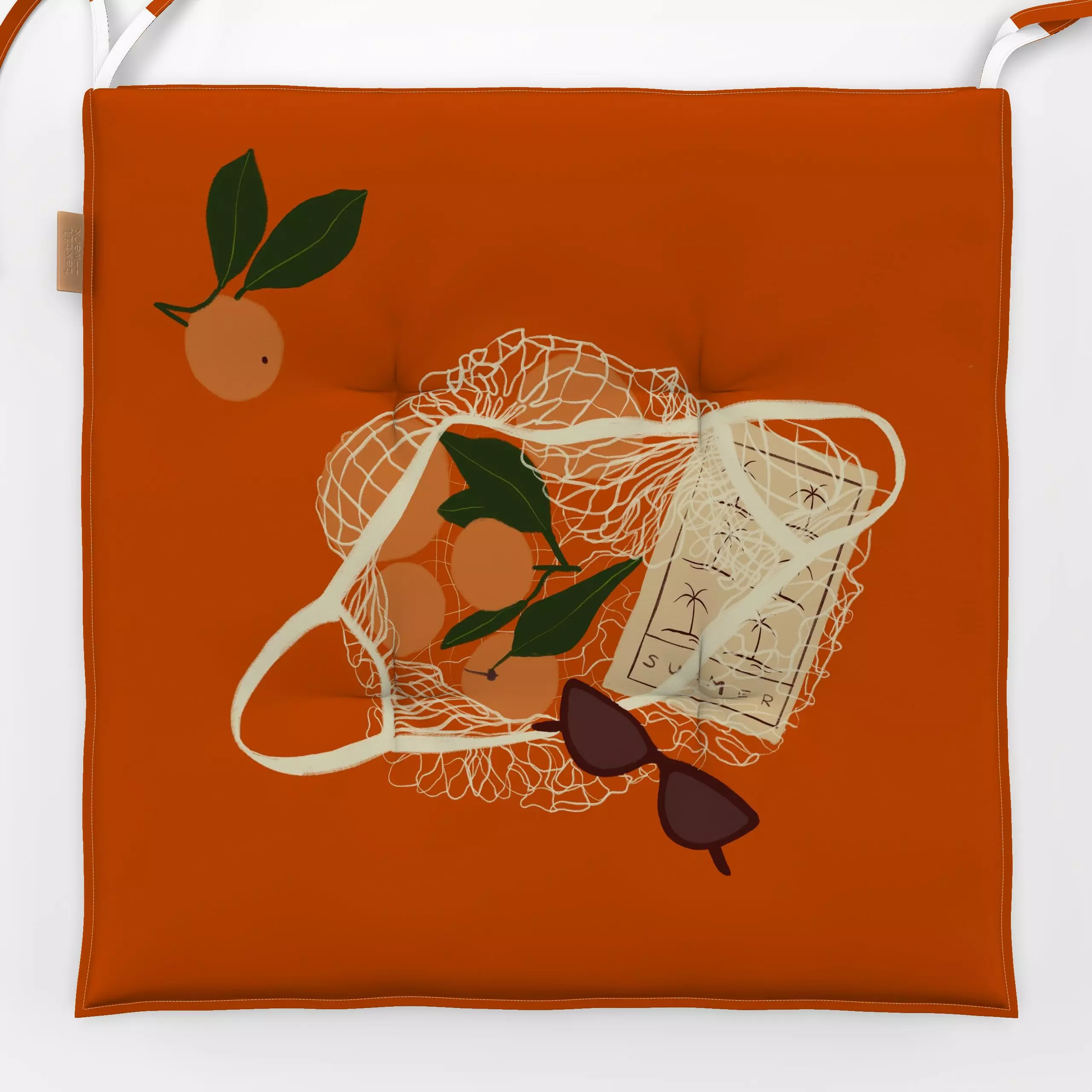 Sitzkissen Einkaufsnetz Burned Sienna - Sommer, Früchte - von „Sophie Augustin Illustration"; Orange, Sommer, mediterran, So...