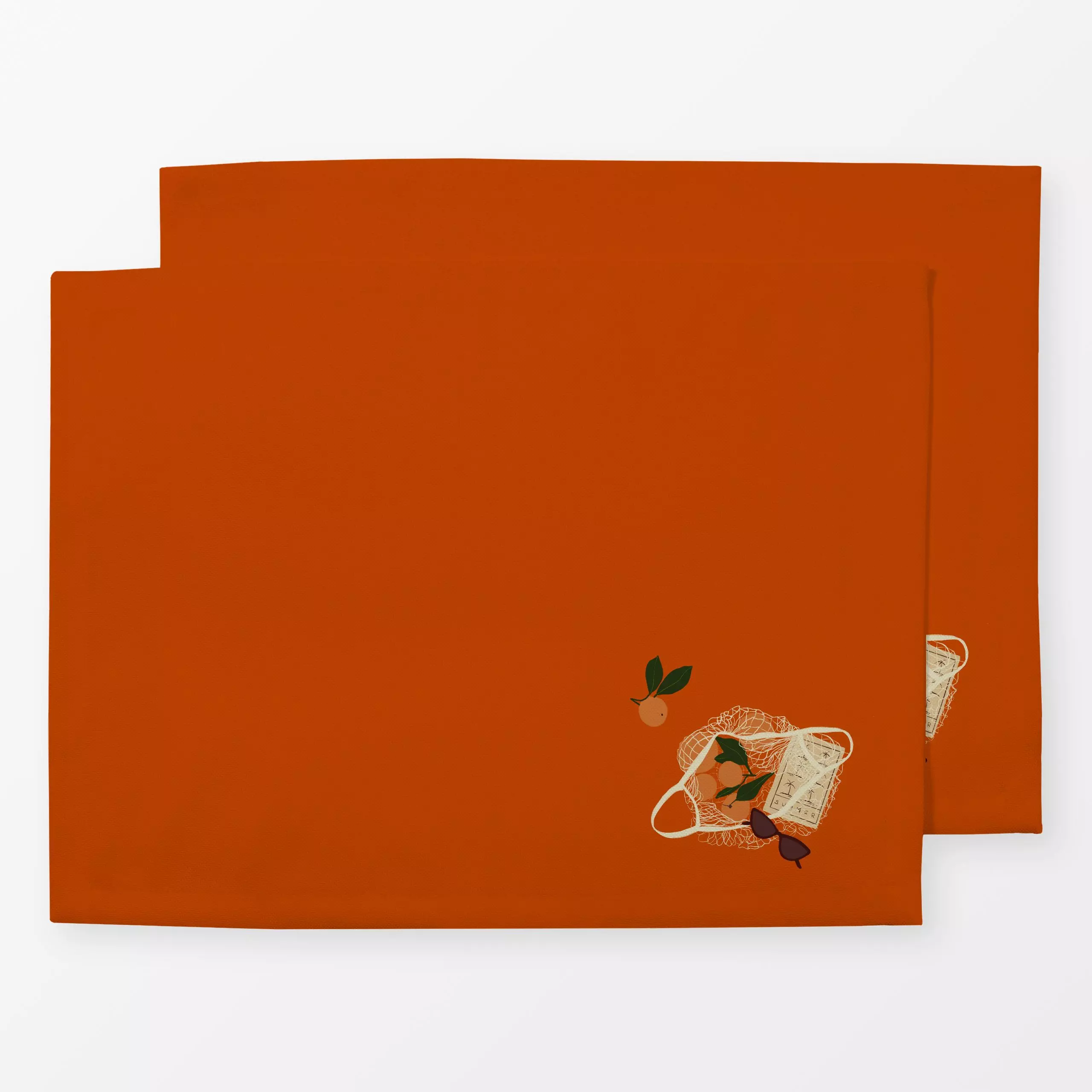 Tischset Einkaufsnetz Orange - Sommer, Früchte - von „Sophie Augustin Illustration"; Strand, Sommer, mediterran, Sommerlich,...