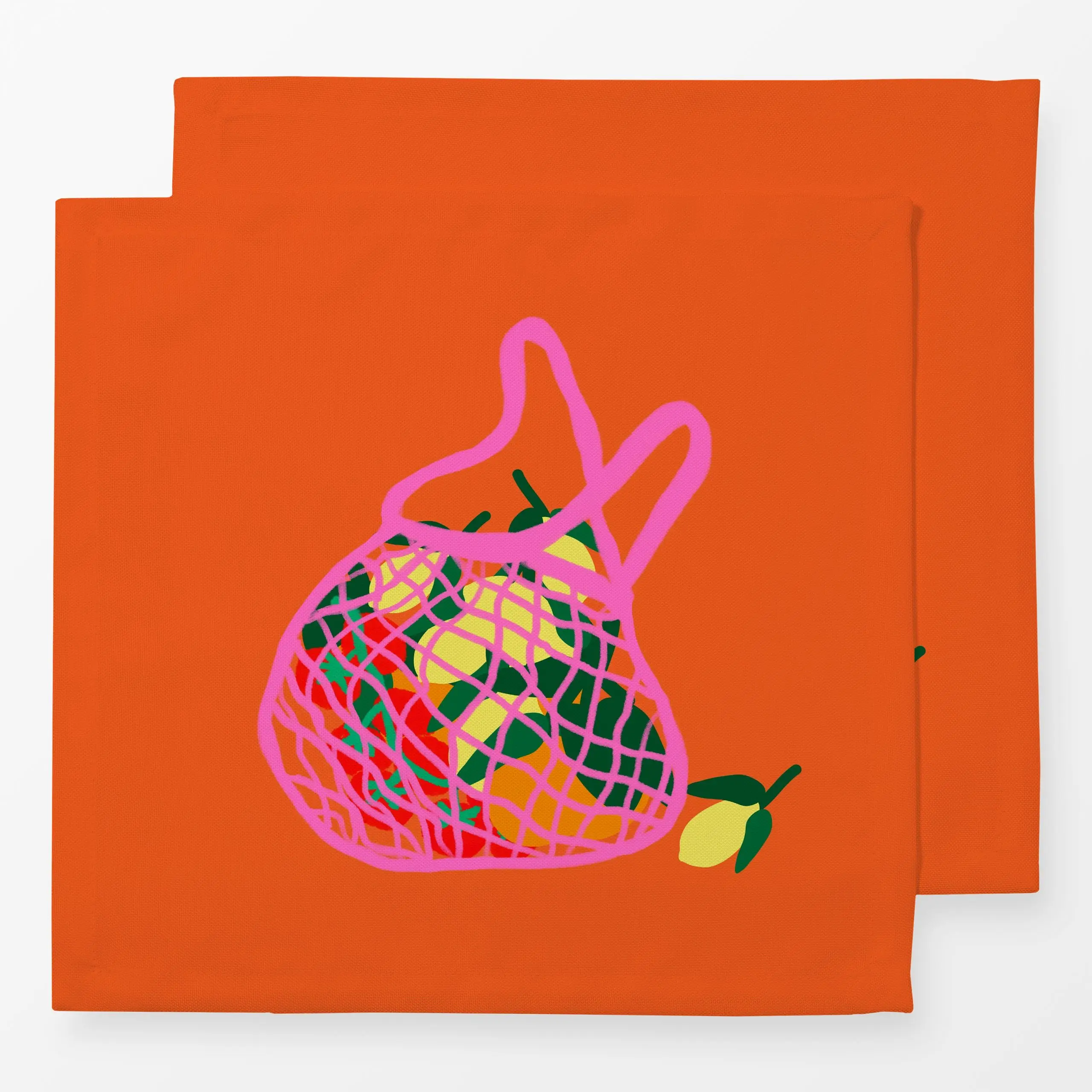Servietten Einkaufsnetz Früchte Orange - Sommer, Früchte - von „Alisa Knöß"; Früchte, pink, geschenkidee, Italien, Gartendek...