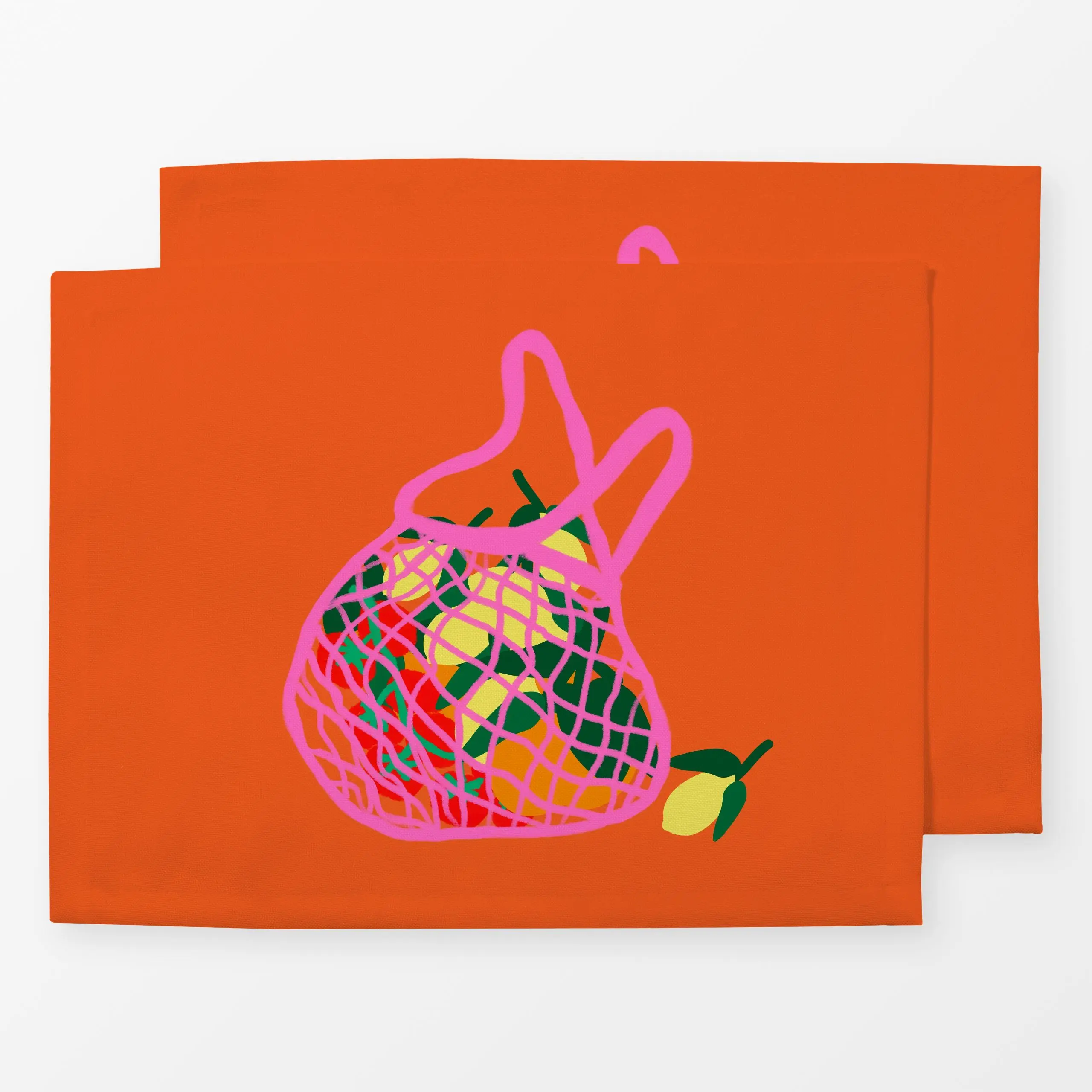 Tischset Einkaufsnetz Früchte Orange - Sommer, Früchte - von „Alisa Knöß"; Früchte, pink, geschenkidee, Italien, Gartendeko,...