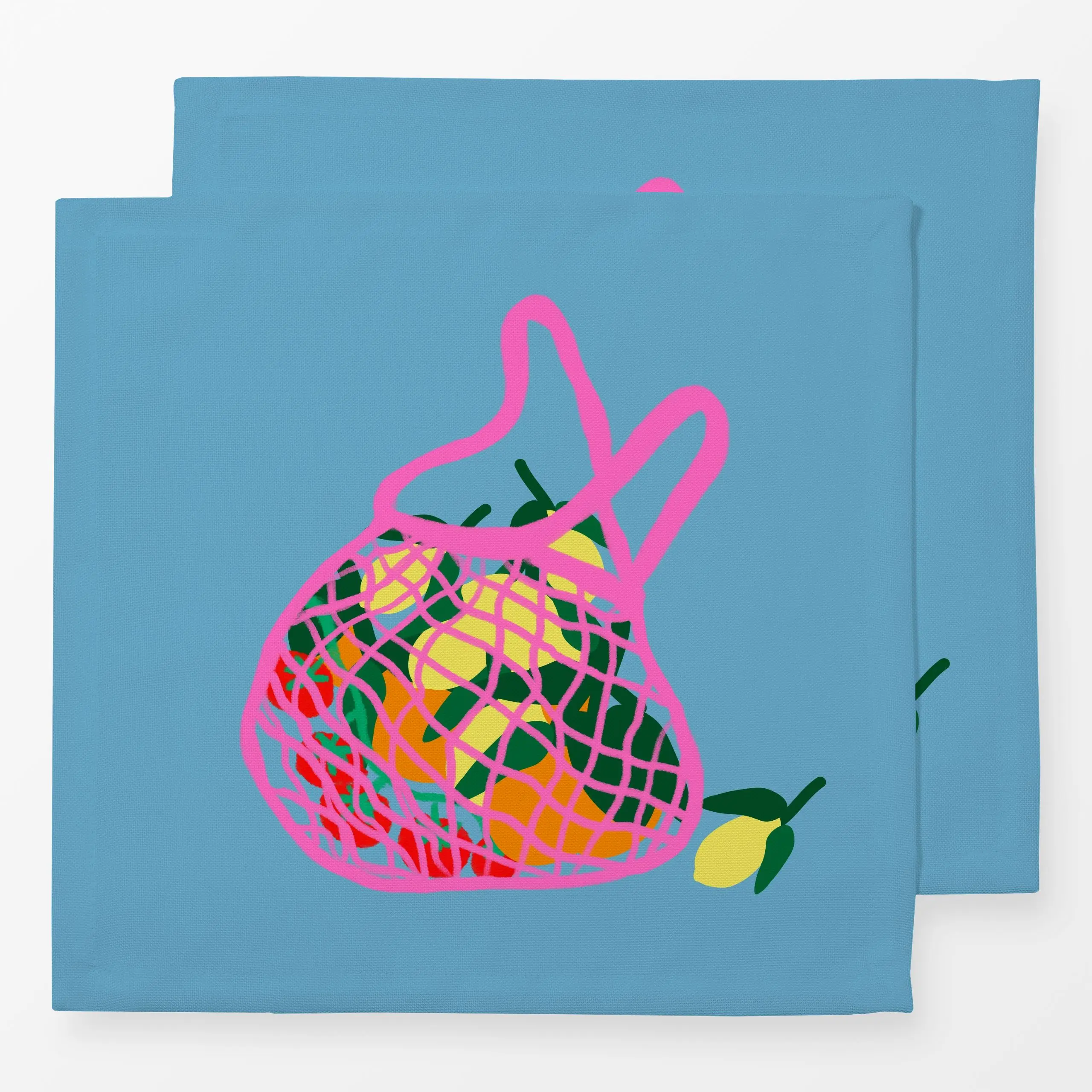 Servietten Einkaufsnetz Früchte Blau - Sommer, Früchte - von „Alisa Knöß"; Früchte, geschenkidee, Italien, outdoorkissen, so...