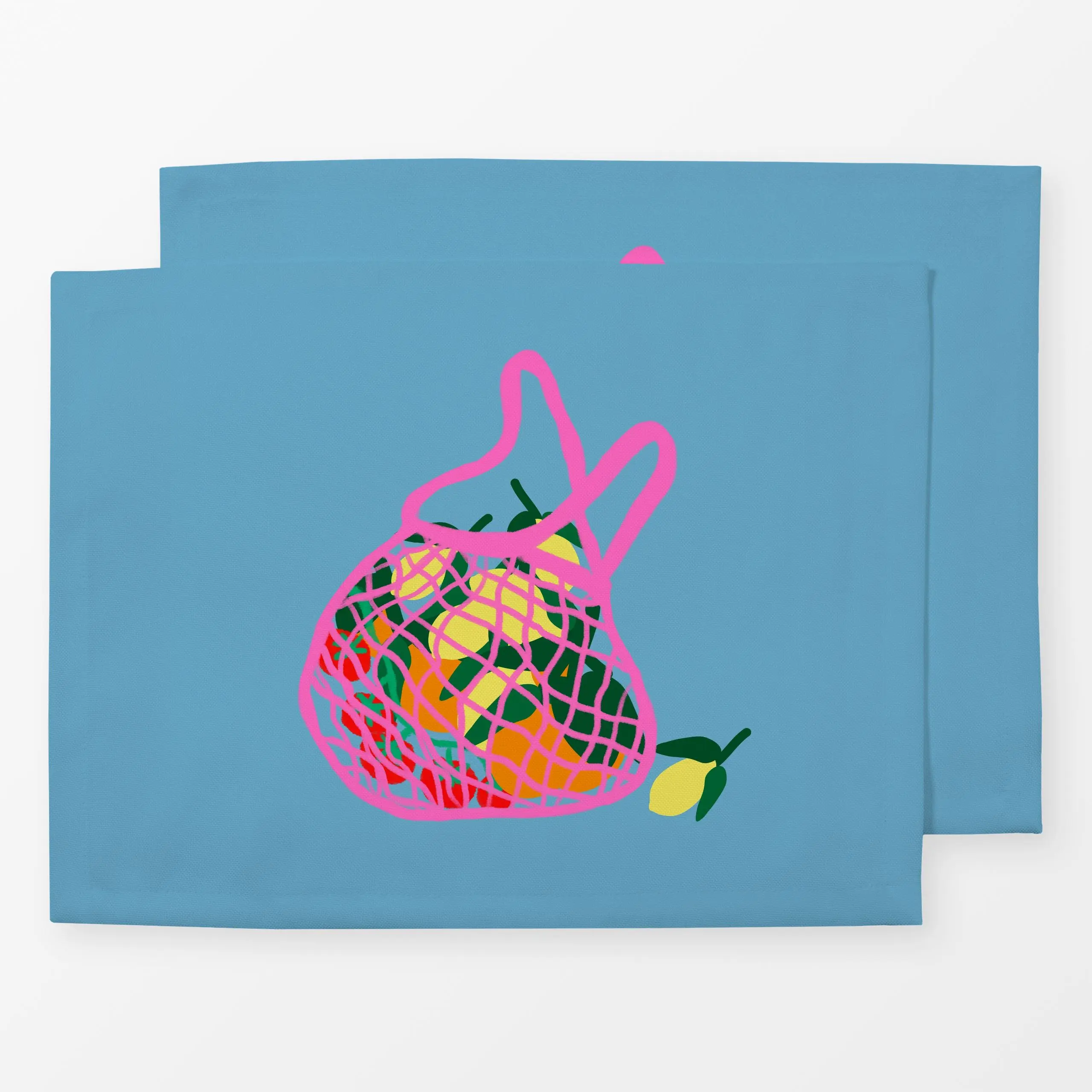 Tischset Einkaufsnetz Früchte Blau - Sommer, Früchte - von „Alisa Knöß"; Früchte, geschenkidee, Italien, outdoorkissen, somm...
