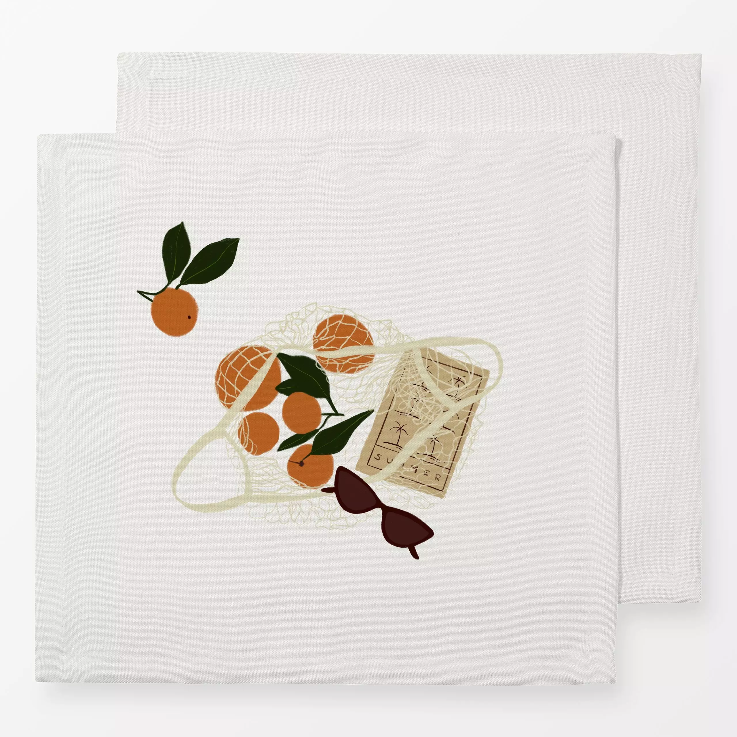 Servietten Einkaufsnetz Orange - Sommer, Früchte - von „Sophie Augustin Illustration"; Strand, Sommer, mediterran, Sommerlic...